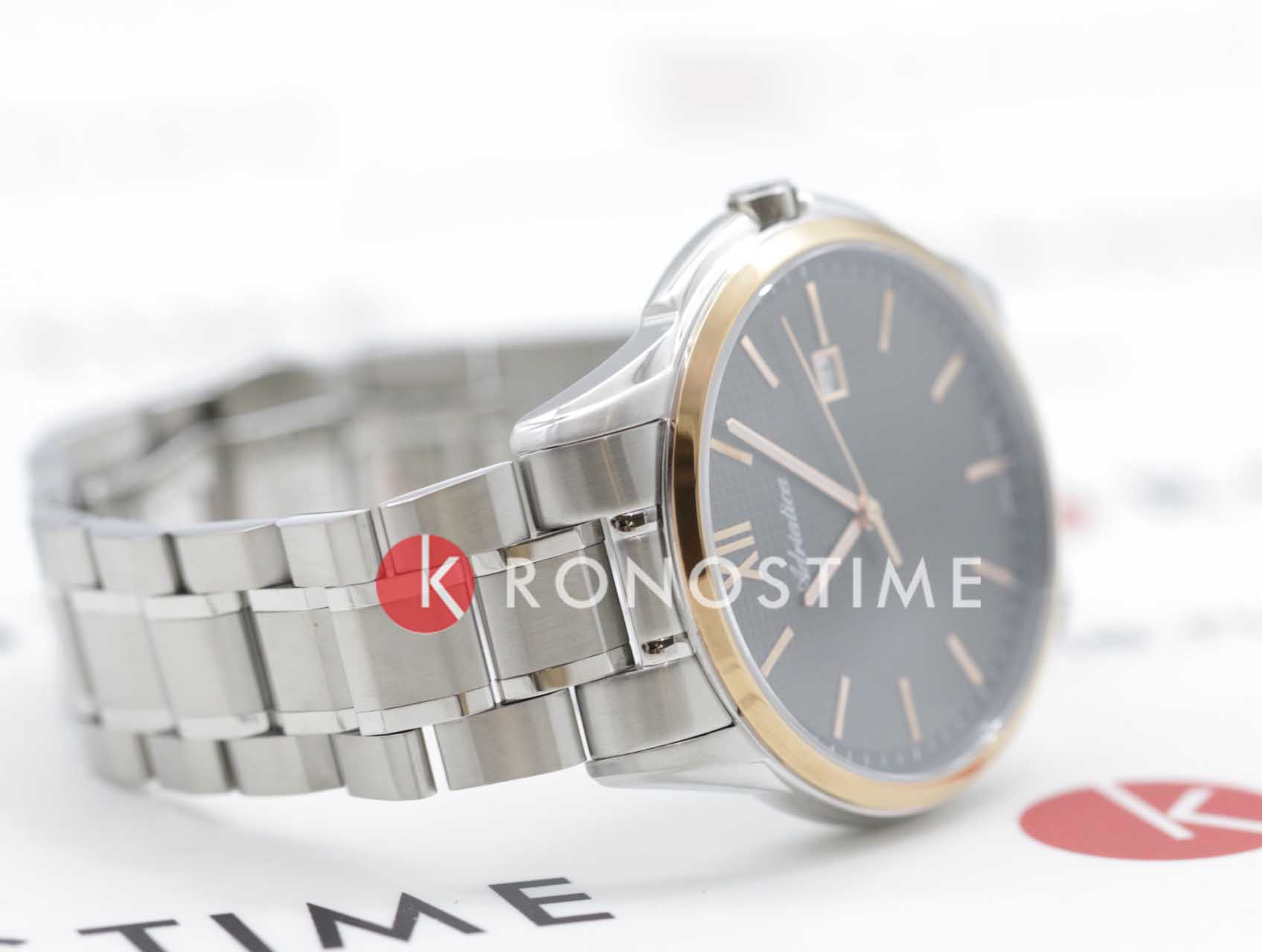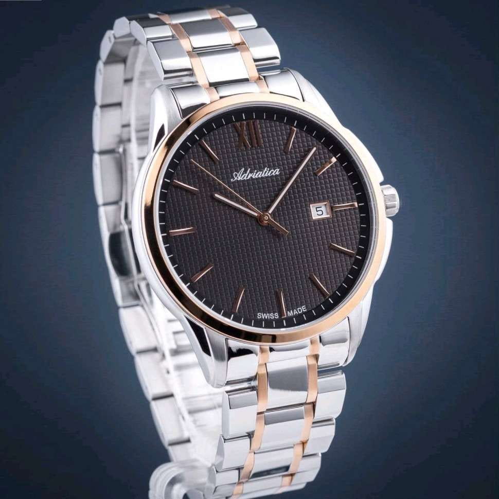 Часы Adriatica A1290.R166Q представляют собой идеальное сочетание элегантности и функциональности, разработанное для современных мужчин. Их стильный черный циферблат защищен сапфировым стекломСапфировое стеклоПрочный и надёжный материал из кристалла сапфира синтетического происхождения, характеризующийся особой твёрдостью и устойчивостью к царапинам и повреждениям., что придает дополнительную устойчивость к царапинам. Корпус из нержавеющей стали и безельБезельВнешний ободок, закрепляющий стекло. В спортивных часах так называется поворотное кольцо с делениями на циферблате, выполняет роль таймера – замеряет отрезки времени на шкале. Неподвижный безель – элемент декора. Однонаправленно вращающийся безель на дайверских часах позволяет фиксировать моменты погружения и выныривания на поверхность. , подчеркивает их изысканность и долговечность. Надежный кварцевый механизм с калибром ETA F06 (PreciDrive) гарантирует точность времени, а водозащита WR 50 (5 ATM) обеспечивает защиту от воды в различных условиях. Браслет из нержавеющей стали с частичным PVDPVDУльтратонкое покрытие наносится в технике вакуумного напыления, сочетает в себе нитрид титана особой прочности со слоем золота или оксида хрома. Несёт в себе декоративную или защитную функцию. покрытием и застежкой «бабочка»Застёжка "бабочка"Такой вид застёжки дополняется предохранителями, помогающими избежать случайного раскрытия браслета. Обладают изящным исполнением. гармонично дополняет общий дизайн и обеспечивает комфортное ношение на запястье. Часы оснащены функцией отображения даты в окошке в положении 3 часа, что добавляет практичности в повседневной жизни. Люминесцентное покрытиеЛюминесцентное покрытиеПозволяет считывать показания времени в темноте. Производители наносят на стрелки, часовые индексы, безель или поверхность циферблата светонакопительный состав, дающий холодное свечение. на стрелках и метках обеспечивает отличную видимость в темноте.