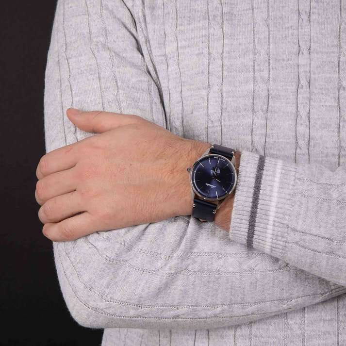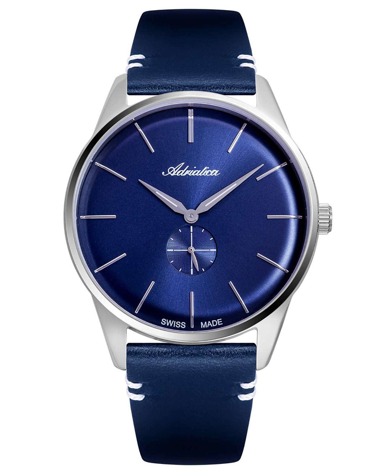 Часы Adriatica A8264.5215Q воплощают в себе элегантность и функциональность, идеально подходящие для современных мужчин, ценящих швейцарское качество. Их синий циферблат, защищенный минеральным стекломМинеральное стеклоМинеральное стекло представляет собой искусственно выращенный минерал кварца. Такое стекло отличается особой устойчивостью к повреждениям и царапинам. Уступает по некоторым качествам сапфировому стеклу., заключен в корпус из нержавеющей стали диаметром 40 мм и толщиной 10 мм. Надежный кварцевый механизм с калибром ETA 902 обеспечивает высокую точность, а водозащита 5 ATM делает часы устойчивыми к воздействию воды. Изящная вынесенная секундная стрелка добавляет стильный акцент. Кожаный синий браслет обеспечивает комфортное ношение и подчеркивает утонченность дизайна. Весом всего 45 г, они практически не ощущаются на запястье. А люминесцентное покрытиеЛюминесцентное покрытиеПозволяет считывать показания времени в темноте. Производители наносят на стрелки, часовые индексы, безель или поверхность циферблата светонакопительный состав, дающий холодное свечение. на стрелках облегчает чтение времени в условиях низкой освещенности.
