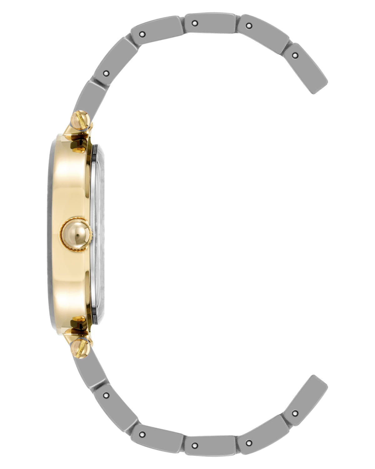 Женские кварцевые часы Anne Klein 1018GPTN из коллекции Ceramic — круглый корпус размером 33 мм из металла с IP-покрытиемIP-покрытиеМетод ионного напыления. Демонстрирует повышенную устойчивость к истиранию, окислению и химическим веществам. Под воздействием высокого давления и температуры около 1500°C молекулы металла надёжно соединяются с частицами корпуса часов., серый циферблат с бриллиантом на отметке 12. Стекло — минеральноеМинеральное стеклоМинеральное стекло представляет собой искусственно выращенный минерал кварца. Такое стекло отличается особой устойчивостью к повреждениям и царапинам. Уступает по некоторым качествам сапфировому стеклу.. Браслет — серый керамический на ювелирной застёжкеРаскладной замокДанный вариант застежки используется только на часах с металлическим браслетом. Отличительная особенность такого крепления в том, что длина браслета становится универсальной и вы можете самостоятельно отрегулировать нужный вам размер – застежка просто двигается по браслету часов.. Водонепроницаемость 30 м. Идеальный выбор для тех, кто ценит американский дизайн и элегантную классику.