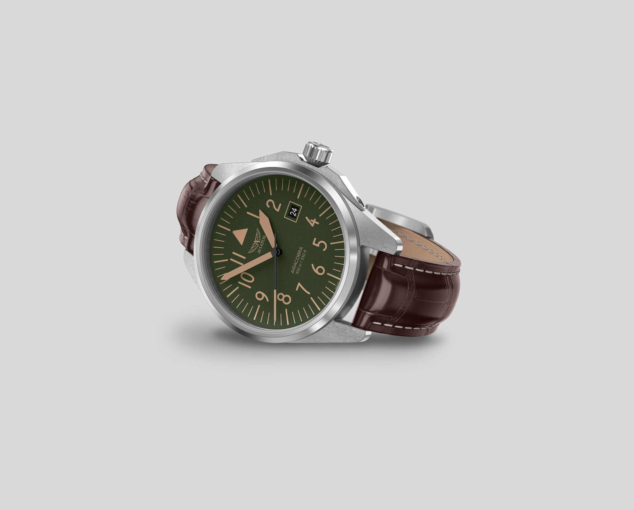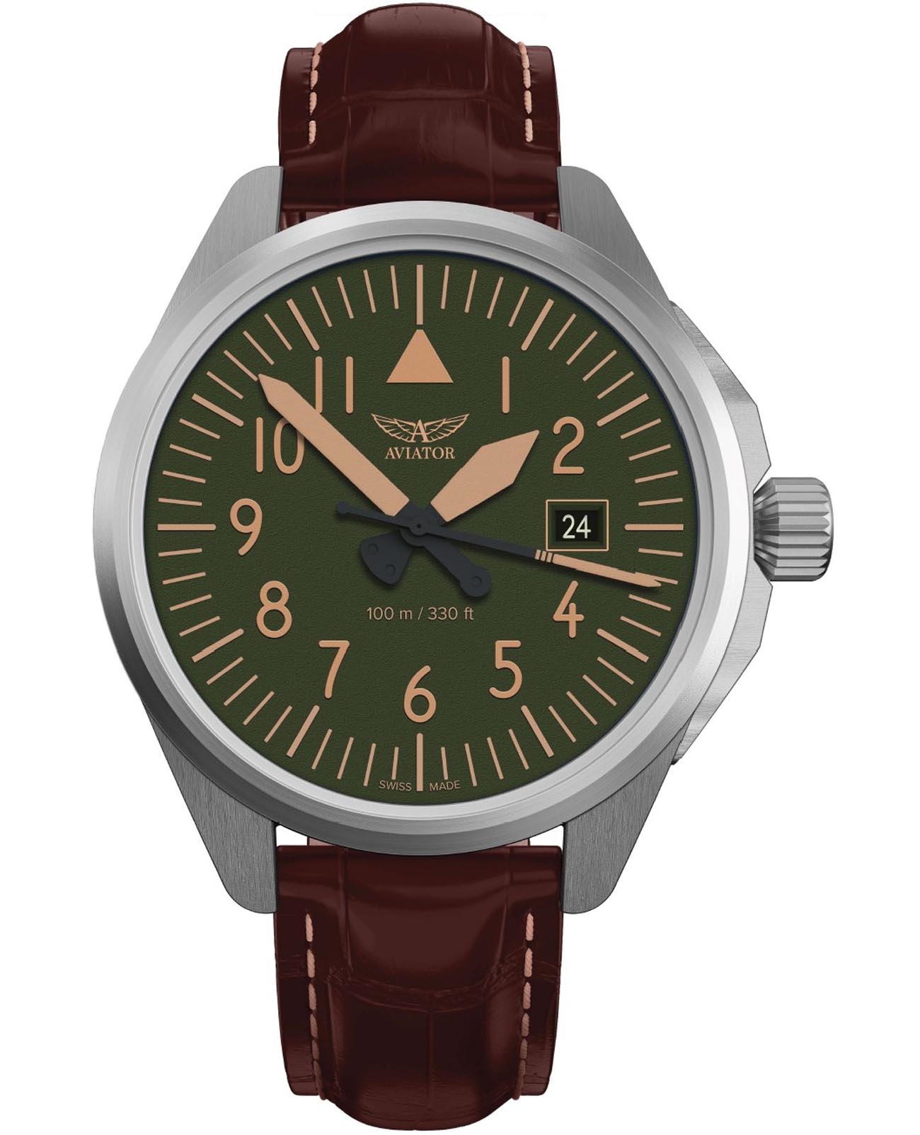 Aviator V.1.38.0.330.4 “Airacobra 43 Type A” — надёжные швейцарские пилотские часы с насыщенным функционалом и строгим авиационным дизайном. Корпус диаметром 42,8 мм выполнен из нержавеющей стали.