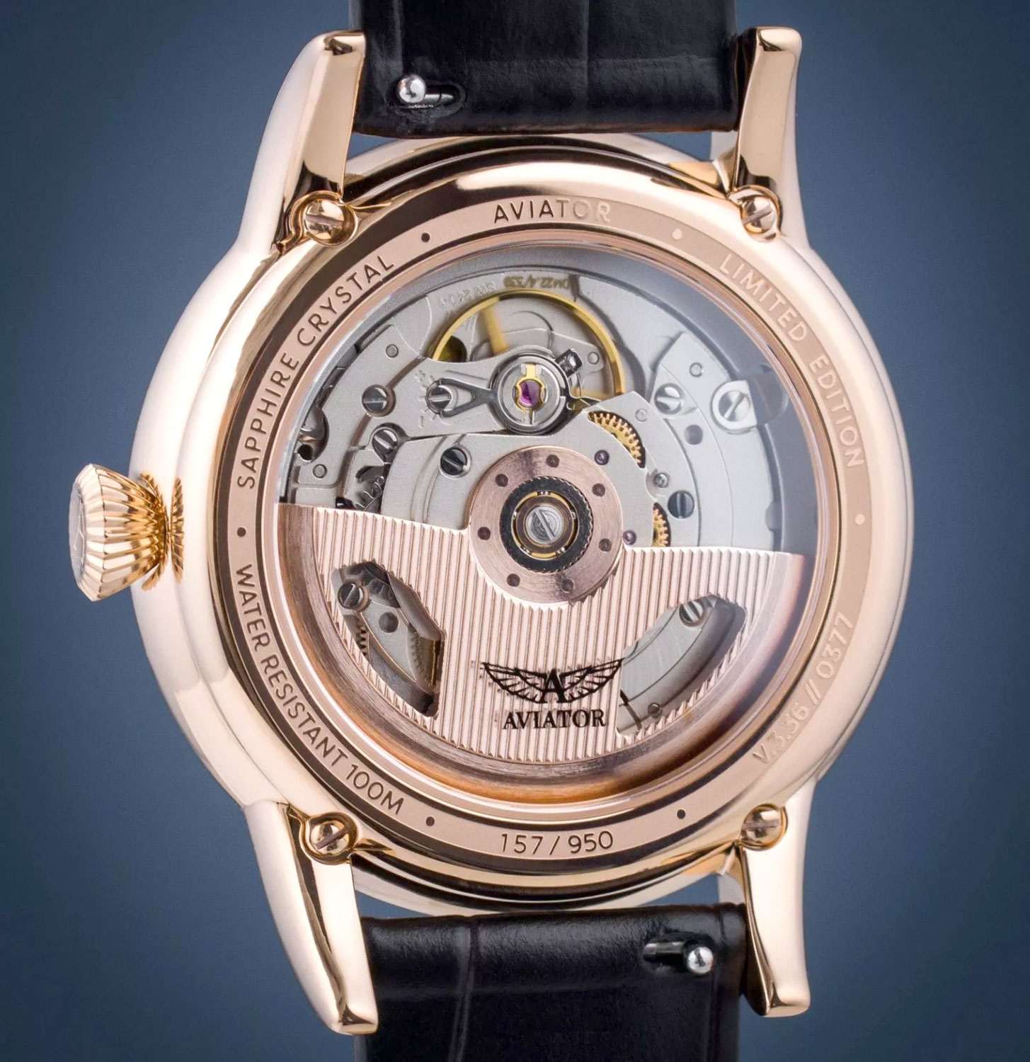 Aviator Douglas Day Date V.3.36.2.285.4 — швейцарские часы в классике авиадизайна, сочетающие безупречную читаемость и высокую надёжность. Лимитированная серия. Корпус диаметром 41 мм выполнен из нержавеющей стали 316L с PVD-покрытиемPVDУльтратонкое покрытие наносится в технике вакуумного напыления, сочетает в себе нитрид титана особой прочности со слоем золота или оксида хрома. Несёт в себе декоративную или защитную функцию. цвета розового золота. Накладные метки выполнены в виде арабских цифр. Окошко даты находится в положении 6 часов. День недели находится в положении 12 часов. Часовые метки и стрелки покрыты люминесцентным покрытиемЛюминесцентное покрытиеПозволяет считывать показания времени в темноте. Производители наносят на стрелки, часовые индексы, безель или поверхность циферблата светонакопительный состав, дающий холодное свечение. Superluminova, позволяющим легко определять время даже в тёмное время суток. Поверхность защищена прочным сапфировым стекломСапфировое стеклоПрочный и надёжный материал из кристалла сапфира синтетического происхождения, характеризующийся особой твёрдостью и устойчивостью к царапинам и повреждениям. с антибликовым покрытием, устойчивым к царапинам. Сердце модели — швейцарский механизм Sellita SW 240-2, известный своей точностью и долговечностью. Водозащита 100 метров, позволит плавать, нырять и заниматься другими водными видами спорта. Завинчивающаяся головка и задняя крышка обеспечивают уверенную ударопрочностьУдаропрочный корпусМеханизм заключён в корпус, выполненный из современных материалов, устойчивых к ударам, механическим повреждениям и падению с высоты: инновационный пластик, карбон, нержавеющая сталь, титан. и надёжную защиту от влаги и пыли. В механизме 26 камней, запас хода до 41 час. Модель дополнена кожаным ремешком с выразительной текстурой и классическим стилем, закреплённым с помощью застёжке-бабочке с кнопкамиЗастёжка "бабочка"Такой вид застёжки дополняется предохранителями, помогающими избежать случайного раскрытия браслета. Обладают изящным исполнением. — для максимального комфорта и лёгкости в повседневном использовании. Ротор механизма с заклепанными элементами и вырезанными окнами напоминает фюзеляж самолета. Aviator — это образец лётной точности, инженерной чёткости и сдержанной роскоши, идеально подходящий для тех, кто ценит функциональность и уверенность в каждом элементе.
