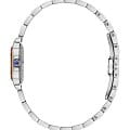 Завершает дизайн стальной браслет с частичным PVD-покрытиемPVDУльтратонкое покрытие наносится в технике вакуумного напыления, сочетает в себе нитрид титана особой прочности со слоем золота или оксида хрома. Несёт в себе декоративную или защитную функцию. и надёжная застёжка-бабочкаЗастёжка "бабочка"Такой вид застёжки дополняется предохранителями, помогающими избежать случайного раскрытия браслета. Обладают изящным исполнением. , обеспечивающая комфорт и уверенную фиксацию на запястье.
