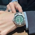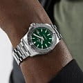 Breitling Avenger Automatic 42 с референсным номером A17328101L1A1 — элегантные мужские часы, сочетающие стиль и функциональность. Корпус диаметром 42 мм выполнен из нержавеющей стали, что обеспечивает прочность и долговечность. Сапфировое стеклоСапфировое стеклоПрочный и надёжный материал из кристалла сапфира синтетического происхождения, характеризующийся особой твёрдостью и устойчивостью к царапинам и повреждениям. с антибликовым покрытием с обеих сторон защищает циферблат и обеспечивает максимальную читаемость. Зелёный матовый циферблат с накладными часовыми метками и стрелками, покрытыми люминесцентным покрытиемЛюминесцентное покрытиеПозволяет считывать показания времени в темноте. Производители наносят на стрелки, часовые индексы, безель или поверхность циферблата светонакопительный состав, дающий холодное свечение., гарантирует отличную видимость в любых условиях. Окошко даты расположено на отметке «3 часа». Часы оснащены автоматическим калибром Breitling 17, сертифицированным COSCСертификат COSCОфициальный сертификат, подтверждающий то, что часы ходят с особо высокой точностью. Для получения документа часы подвергаются тестовым испытаниям, разработанным швейцарским институтом тестирования хронометров COSC. Допустимая норма для механических часов -4/+6 секунд в день, для кварцевых моделей +/- 0,07 секунд в день.. Механизм имеет частоту 28 800 полуколебаний в час, 25 камней и запас хода до 38 часов. Водозащита до 30 ATM (300 метров) делает их подходящими для плавания и дайвинга. Браслет из нержавеющей стали с раскладной застёжкойРаскладная застёжкаТакой тип застёжки используется только на браслетах из металла. Она никогда не раскрывается полностью, происходит разделение на 2 и более частей. Раскладывающая застёжка снизит вероятность потери часов к минимуму. и предохранителем обеспечивает комфортное ношение и надёжную фиксацию. Breitling Avenger Automatic 42 A17328101L1A1 — выбор для мужчин, которые ценят стиль, функциональность и высокое качество.