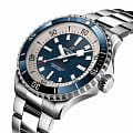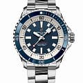 Мужские водонепроницаемые швейцарские часы Breitling Superocean Automatic 42 A17375E71C1A1, механический механизм (автоматический калибр) с высокой точностью. Сапфировое стеклоСапфировое стеклоПрочный и надёжный материал из кристалла сапфира синтетического происхождения, характеризующийся особой твёрдостью и устойчивостью к царапинам и повреждениям. устойчивое к появлению царапин, обладающее высокой прозрачностью. Класс водозащиты: 300 метров, позволит плавать, нырять и заниматься другими водными видами спорта. Корпус часов изготовлен из стали. Стальной браслет с раскладной застёжкойРаскладная застёжкаТакой тип застёжки используется только на браслетах из металла. Она никогда не раскрывается полностью, происходит разделение на 2 и более частей. Раскладывающая застёжка снизит вероятность потери часов к минимуму.. Стрелки и метки с люминесцентным покрытиемЛюминесцентное покрытиеПозволяет считывать показания времени в темноте. Производители наносят на стрелки, часовые индексы, безель или поверхность циферблата светонакопительный состав, дающий холодное свечение.. Широкие стрелки и индексы с люминесцентным покрытиемЛюминесцентное покрытиеПозволяет считывать показания времени в темноте. Производители наносят на стрелки, часовые индексы, безель или поверхность циферблата светонакопительный состав, дающий холодное свечение. обеспечивают легкую читаемость под водой. Вращающийся стальной безельБезельВнешний ободок, закрепляющий стекло. В спортивных часах так называется поворотное кольцо с делениями на циферблате, выполняет роль таймера – замеряет отрезки времени на шкале. Неподвижный безель – элемент декора. Однонаправленно вращающийся безель на дайверских часах позволяет фиксировать моменты погружения и выныривания на поверхность. с люминесцентным покрытиемЛюминесцентное покрытиеПозволяет считывать показания времени в темноте. Производители наносят на стрелки, часовые индексы, безель или поверхность циферблата светонакопительный состав, дающий холодное свечение. Superluminova из нержавеющей стали и керамики, защищенный от царапин, никогда не изнашивается и не выцветает.