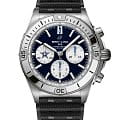 Мужские швейцарские часы-хронограф с секундомером Breitling Chronomat B01 42 NFL Dallas Cowboys Edition AB01342B1C1S1, механический механизм (автоматический калибр) с высокой точностью. Сапфировое стеклоСапфировое стеклоПрочный и надёжный материал из кристалла сапфира синтетического происхождения, характеризующийся особой твёрдостью и устойчивостью к царапинам и повреждениям. устойчивое к появлению царапин, обладающее высокой прозрачностью. Класс водозащиты: 200 метров, позволит плавать, нырять и заниматься другими водными видами спорта. Корпус часов изготовлен из нержавеющей стали. Браслет из каучука на раскладной застёжкеРаскладная застёжкаТакой тип застёжки используется только на браслетах из металла. Она никогда не раскрывается полностью, происходит разделение на 2 и более частей. Раскладывающая застёжка снизит вероятность потери часов к минимуму.. Стрелки и метки с люминесцентным покрытиемЛюминесцентное покрытиеПозволяет считывать показания времени в темноте. Производители наносят на стрелки, часовые индексы, безель или поверхность циферблата светонакопительный состав, дающий холодное свечение.. Шкала тахиметра на циферблате. Окошко даты находится в положении 6 часов.