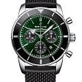 Вдохновленный оригинальным Superocean 1950-х годов, Superocean Heritage сочетает в себе культовые черты дизайна с современными нотками. Спортивный и элегантный Superocean Heritage является истинным воплощением морского стиля. Мужские швейцарские часы с хронографом Breitling Superocean Heritage B01 Chronograph 44 Limited Edition AB01621A1L1S1, механический механизм (автоматический калибр) с высокой точностью. Сапфировое стеклоСапфировое стеклоПрочный и надёжный материал из кристалла сапфира синтетического происхождения, характеризующийся особой твёрдостью и устойчивостью к царапинам и повреждениям. устойчивое к появлению царапин, обладающее высокой прозрачностью. Класс водозащиты: 200 метров, позволит плавать, нырять и заниматься другими водными видами спорта. Корпус часов изготовлен из стали. Коллекция Superocean Heritage с черным циферблатом зеленого цвета выпущена ограниченным тиражом в 500 экземпляров. Часы Superocean Heritage, оснащенные культовыми стрелками треугольной формы, а также однонаправленным безелемБезельВнешний ободок, закрепляющий стекло. В спортивных часах так называется поворотное кольцо с делениями на циферблате, выполняет роль таймера – замеряет отрезки времени на шкале. Неподвижный безель – элемент декора. Однонаправленно вращающийся безель на дайверских часах позволяет фиксировать моменты погружения и выныривания на поверхность. с полированным керамическим кольцом, представляют собой элегантные часы для дайверов. Часы оснащены хронометром калибра 01 собственной мануфактуры Breitling, сертифицированным COSCСертификат COSCОфициальный сертификат, подтверждающий то, что часы ходят с особо высокой точностью. Для получения документа часы подвергаются тестовым испытаниям, разработанным швейцарским институтом тестирования хронометров COSC. Допустимая норма для механических часов -4/+6 секунд в день, для кварцевых моделей +/- 0,07 секунд в день..