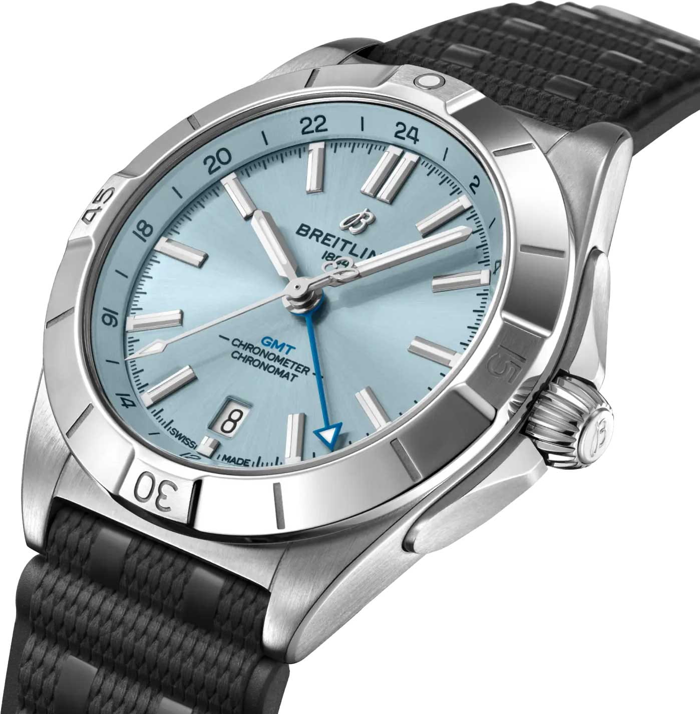Мужские швейцарские часы Breitling Chronomat Automatic GMT 40 P32398101C1S2, механический механизм (автоматический калибр) с высокой точностью. Часы Chronomat Automatic GMTGMTОтображение времени второго часового пояса.Такая функция особенно актуальна для путешественников и бизнесменов,которые общаются с людьми из разных стран,теперь вы всегда будете знать,какой час у вашего партнёра или близкого человека. 40 - это дань уважения Breitling путешествиям не только благодаря дисплею с двумя часовыми поясами, но и благодаря своей непринужденной эстетике. 24-часовая шкала позволяет пользователю отслеживать второй часовой поясВторой часовой поясФункция, позволяющая отображать время двух часовых поясов одновременно. и с первого взгляда определять, день сейчас или ночь, а заводная головка “луковица” (классическая функция хронометра, получившая название из-за своей рифленой формы купола) позволяет легко регулировать время. Сапфировое стеклоСапфировое стеклоПрочный и надёжный материал из кристалла сапфира синтетического происхождения, характеризующийся особой твёрдостью и устойчивостью к царапинам и повреждениям. с антибликовым покрытиемАнтибликовое покрытиеСлой оксида металла в 0,13-0,3 микрон, благодаря которому стекло часов не бликует и не отражает свет. Антибликовое покрытие уменьшает отражение света в 10 раз, обеспечивая отличную читаемость показателей циферблата. устойчивое к появлению царапин, обладающее высокой прозрачностью. Класс водозащиты: 200 метров, позволит плавать, нырять и заниматься другими водными видами спорта. Корпус часов изготовлен из нержавеющей стали и платины, диаметром 40 мм. Каучуковый ремешок на раскладной застёжкеРаскладная застёжкаТакой тип застёжки используется только на браслетах из металла. Она никогда не раскрывается полностью, происходит разделение на 2 и более частей. Раскладывающая застёжка снизит вероятность потери часов к минимуму. обеспечивает комфортное ношение. Часы имеют сертификат COSCСертификат COSCОфициальный сертификат, подтверждающий то, что часы ходят с особо высокой точностью. Для получения документа часы подвергаются тестовым испытаниям, разработанным швейцарским институтом тестирования хронометров COSC. Допустимая норма для механических часов -4/+6 секунд в день, для кварцевых моделей +/- 0,07 секунд в день., запас хода примерно 42 часа. Стрелки и метки с люминесцентным покрытиемЛюминесцентное покрытиеПозволяет считывать показания времени в темноте. Производители наносят на стрелки, часовые индексы, безель или поверхность циферблата светонакопительный состав, дающий холодное свечение.. Окошко даты находится в положении 6 часов. Известные как “часы на все случаи жизни”, часы Chronomat сейчас актуальны как никогда благодаря практичным размерам GMT 40 и сдержанному стилю.
