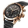 На массивном корпусе диаметром 46 мм напротив метки «3 часа» выделяется крупная заводная головка. Рифление на безеле обеспечивает надежный захват, а отстрочка на ремешках из телячьей кожи напоминает отделку классического летного снаряжения.