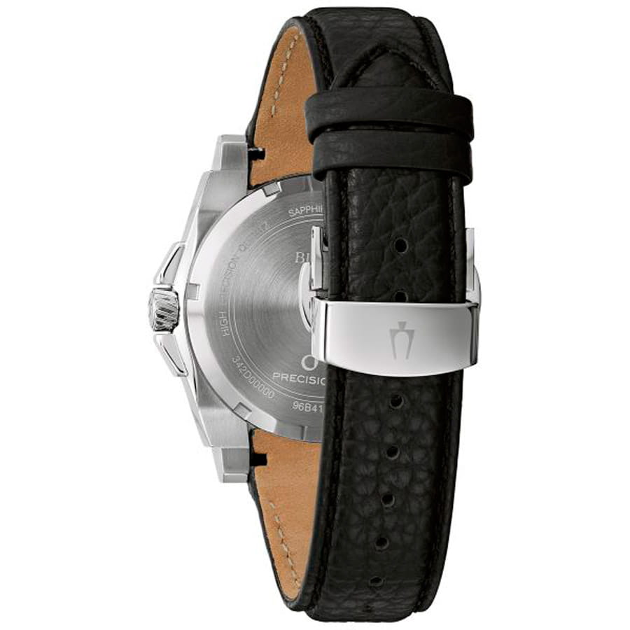Мужские кварцевые наручные часы Bulova Precisionist 96B416 – отражающий идеальное сочетание современного дизайна, надёжности и функциональности. Корпус из нержавеющей стали серебристого цвета, диаметром 40 мм идеально сбалансирован и надежен. Сапфировое стеклоСапфировое стеклоПрочный и надёжный материал из кристалла сапфира синтетического происхождения, характеризующийся особой твёрдостью и устойчивостью к царапинам и повреждениям. защищает циферблат от царапин и устойчивое к механическим повреждениям. Кожаный ремешок на застёжке-бабочке с кнопкамиЗастёжка "бабочка"Такой вид застёжки дополняется предохранителями, помогающими избежать случайного раскрытия браслета. Обладают изящным исполнением. обеспечивает комфортное ношение. Окошко даты находится в положении 3 часа. Циферблат с часовыми индексами в виде штрихов и цифр. 12/24х часовой формат времени. Водозащита 100 метров позволит плавать, нырять и заниматься другими водными видами спорта. Стрелки и метки с люминесцентным покрытиемЛюминесцентное покрытиеПозволяет считывать показания времени в темноте. Производители наносят на стрелки, часовые индексы, безель или поверхность циферблата светонакопительный состав, дающий холодное свечение. позволяющие легко определять время даже в темноте. Эта модель – отличный выбор для тех, кто ищет сочетание стиля, качества и функциональности. Часы станут не только полезным аксессуаром, но и выразительным элементом вашего имиджа.