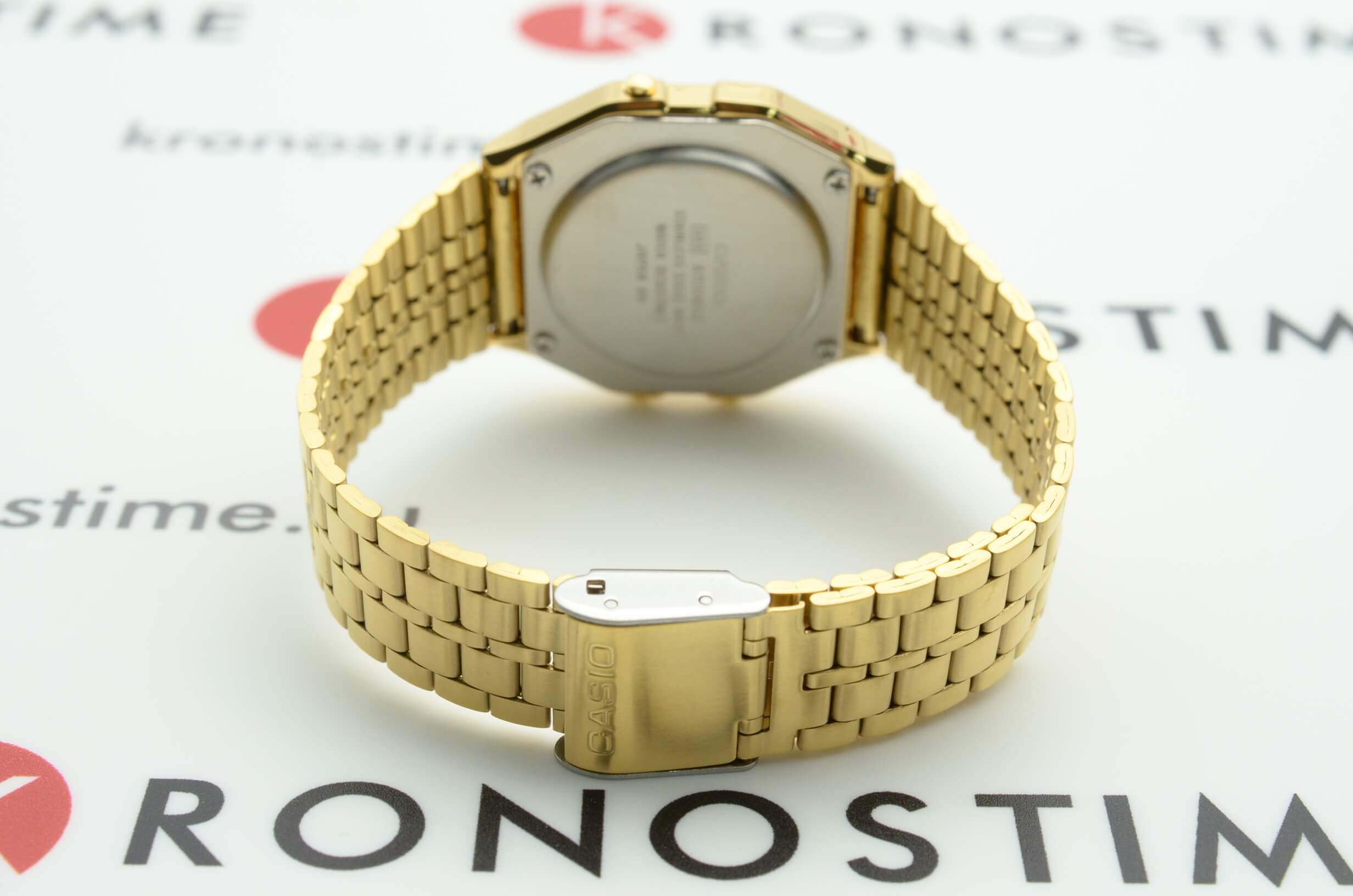 Наручные часы имеют ударопрочный корпусУдаропрочный корпусМеханизм заключён в корпус, выполненный из современных материалов, устойчивых к ударам, механическим повреждениям и падению с высоты: инновационный пластик, карбон, нержавеющая сталь, титан. 8-угольной формы, устойчивый к царапинам, падению, механическим повреждениям. Дополнительную защиту обеспечивает IP-покрытиеIP-покрытиеМетод ионного напыления. Демонстрирует повышенную устойчивость к истиранию, окислению и химическим веществам. Под воздействием высокого давления и температуры около 1500°C молекулы металла надёжно соединяются с частицами корпуса часов. цвета жёлтого золота. Пластиковое стекло отличается прочностью. Кварцевый механизм работает от аккумулятора, срок службы которого составляет 7 лет. Светодиодная микроподсветкаСветодиодная подсветкаСветодиодная или LED-подсветка обеспечивает появление яркого холодного свечения за счёт LED-элементов - маленьких лампочек. Они потребляют минимальное количество энергии, чаще всего можно встретить 1 светодиод, в нижней части циферблата.. Будильник с ежечасным сигналом, секундомер, автоматический календарь. Браслет из нержавеющей стали 316L. Габариты: 33,2 x 36,8 x 8,2 мм.