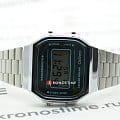 Серебристая цветовая гамма подойдёт к любой одежде, предоставляя простор для экспериментов. Цифровой дисплей в голубом цвете оснащён функцией подсветки, облегчающей считывание информации в темноте. Среди дополнительных возможностей числятся будильник, календарь, секундомер. Ударопрочный корпус сделан из полимерного пластика. Минеральное стекло отличается устойчивостью к появлению царапин. Габариты: 38,6 x 36,3 x 9,6 мм.