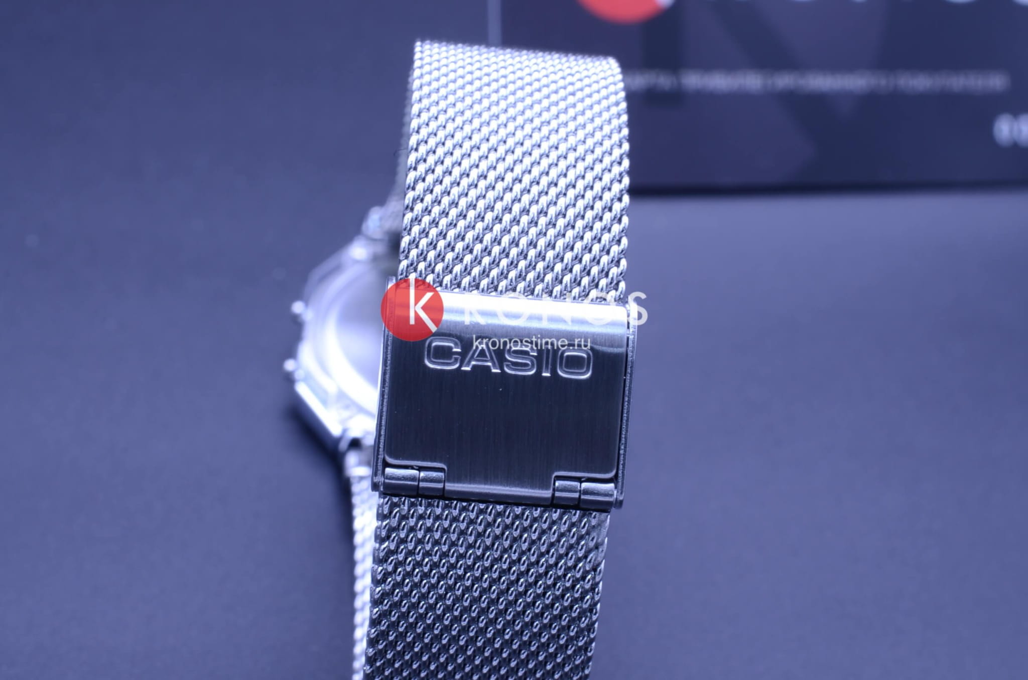Серебристая цветовая гамма подойдёт к любой одежде, предоставляя простор для экспериментов. Цифровой дисплей оснащён функцией подсветки, облегчающей считывание информации в темноте. Среди дополнительных возможностей числятся будильник, календарь, секундомер. Ударопрочный корпус сделан из полимерного пластика. Стильный браслет миланского плетения. Минеральное стекло отличается устойчивостью к появлению царапин. Габариты: 38,6 x 36,3 x 9,6 мм.