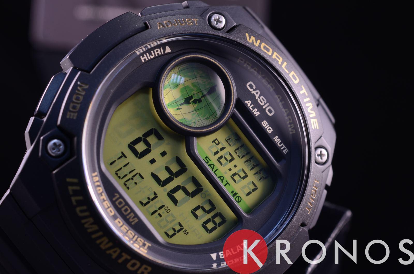 Стильный и современный дизайн. Часы предупреждают при наступлении каждой из 5-ти молитв. Мусульманский календарь. Отображается возраст и фаза луны. Светодиодная подсветкаСветодиодная подсветкаСветодиодная или LED-подсветка обеспечивает появление яркого холодного свечения за счёт LED-элементов - маленьких лампочек. Они потребляют минимальное количество энергии, чаще всего можно встретить 1 светодиод, в нижней части циферблата.. Водонепроницаемость составляет 100 WR.