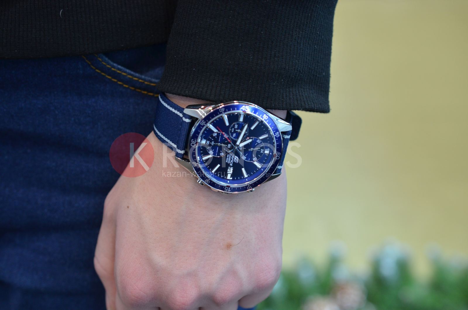 Спортивная модель является воплощением автогоночного дизайна, насыщенно-синий оттенок позволяет сделать часы ключевой деталью образа. Главной особенностью стал комфортный текстильный ремешок, материал не вызывает аллергии на чувствительной коже. Ударопрочный корпусУдаропрочный корпусМеханизм заключён в корпус, выполненный из современных материалов, устойчивых к ударам, механическим повреждениям и падению с высоты: инновационный пластик, карбон, нержавеющая сталь, титан. изготовлен из нержавеющей стали 316L, материал устойчив к царапинам и ударам. Японский кварцевый механизм работает от батарейки, срок службы которой рассчитан на 3 года. Синий алюминиевый безельБезельВнешний ободок, закрепляющий стекло. В спортивных часах так называется поворотное кольцо с делениями на циферблате, выполняет роль таймера – замеряет отрезки времени на шкале. Неподвижный безель – элемент декора. Однонаправленно вращающийся безель на дайверских часах позволяет фиксировать моменты погружения и выныривания на поверхность.. Закаленное минеральное стекло. Люминесцентная подсветка NeobriteПодсветка NeobriteИспользование светонакопительных составов на основе сульфида цинка или алюмината стронция, яркий свет можно наблюдать на протяжении 6-10 часов после «зарядки» часов около источника света.. Водонепроницаемость 10 бар. Заводная головка с системой защиты. Секундомер, календарь, хронографХронографФункция позволяет измерять отрезки времени с особой точностью: часы, минуты, секунды. Верным признаком хронографа является наличие на циферблате 3 дополнительных окошек-счётчиков.. Габариты: 47 x 53 x 11,8 мм.