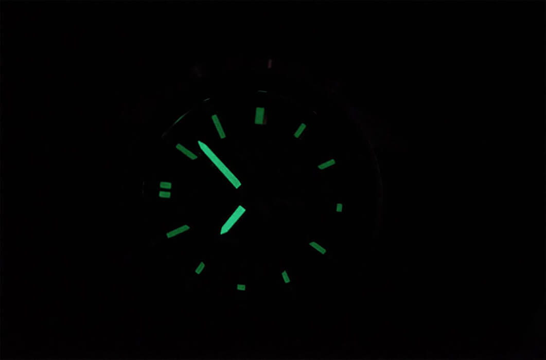 Расположение миниатюрных счётчиков на тёмном циферблате напоминает о приборной панели автомобиля, присутствуют ярко-голубые детали. Надёжный каучуковый ремешок отличается долговечностью и обеспечивает комфортное ношение. Сохраняется водостойкость при давлении 10 бар, чему дополнительно способствует завинчивающаяся задняя крышка. Кварцевый механизм с точностью +/- 20 секунд в месяц. Люминесцентная подсветкаЛюминесцентное покрытиеПозволяет считывать показания времени в темноте. Производители наносят на стрелки, часовые индексы, безель или поверхность циферблата светонакопительный состав, дающий холодное свечение.. Закаленное минеральное стекло. ХронографХронографФункция позволяет измерять отрезки времени с особой точностью: часы, минуты, секунды. Верным признаком хронографа является наличие на циферблате 3 дополнительных окошек-счётчиков., секундомер, отдельное окошко даты. Габариты: 53 x 47 x 12,1 мм.