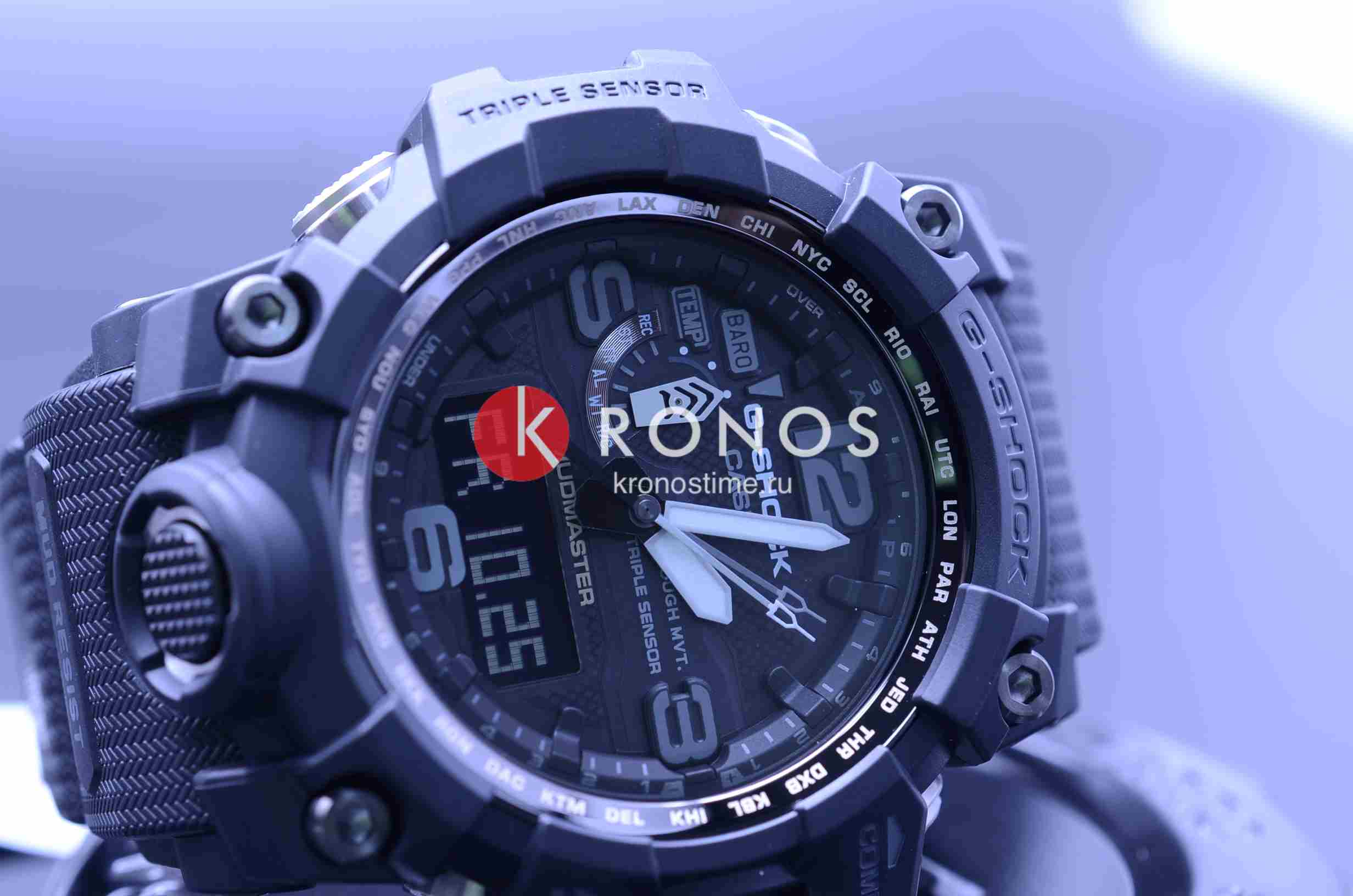 Наручные часы серии Mudmaster в лаконичном чёрном исполнении привлекают брутальным дизайном с внушительным ударопрочным корпусомУдаропрочный корпусМеханизм заключён в корпус, выполненный из современных материалов, устойчивых к ударам, механическим повреждениям и падению с высоты: инновационный пластик, карбон, нержавеющая сталь, титан.. Они выполнены в стиле милитари, сочетая в себе узнаваемое оформление, прочные материалы и современные технологии. Привлекательно смотрится полимерный ремешок с фактурной поверхностью, обеспечивающий комфортное ношение. Циферблат защищает сапфировое стекло с антибликовым покрытием, устойчивое к возникновению царапин. Корпус из высококачественного пластика. Двойная электролюминесцентная подсветкаЭлектролюминесцентная подсветкаЭлектролюминесцентная панель устанавливается под ЖК-экраном часов, при нажатии кнопки электричество преобразуется в свет за счёт подачи напряжения на атомы фосфора, такой тип подсветки позволяет освещать весь циферблат.. Питание от солнечной батареи . Индикатор заряда батарейки. Закаленное минеральное стекло. Устойчивость к грязи и пыли. Включение и выключение звука кнопок. Функции: цифровой компас, барометр, термометр от -10° С до +60°С, UTCUTCВсемирное кординационное время, не имеющее привязки к географическому положению Гринвича, основывается на атомном отсчёте времени. Регулировка времени осуществляется более точно, чем устаревшее GMT.