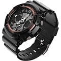G-Shock. Светодиодная подсветка с автоподсветкой, обеспечивает освещение всего циферблата, при наклоне часов в сторону лица для считывания, функция автоподсветки обеспечивает автоматическое включение подсветки. Ударопрочная конструкция защищает механизм от ударов и вибрации. Защищены от магнитных полей. Секундомер с точностью показаний 1/1000с и временем измерения 100ч. Измерение скорости и расстояния. Сплит-хронограф. Таймер обратного отсчета от 1мин до 24ч с автоповтором. Мировое время. 12-ти и 24-х часовой формат времени.