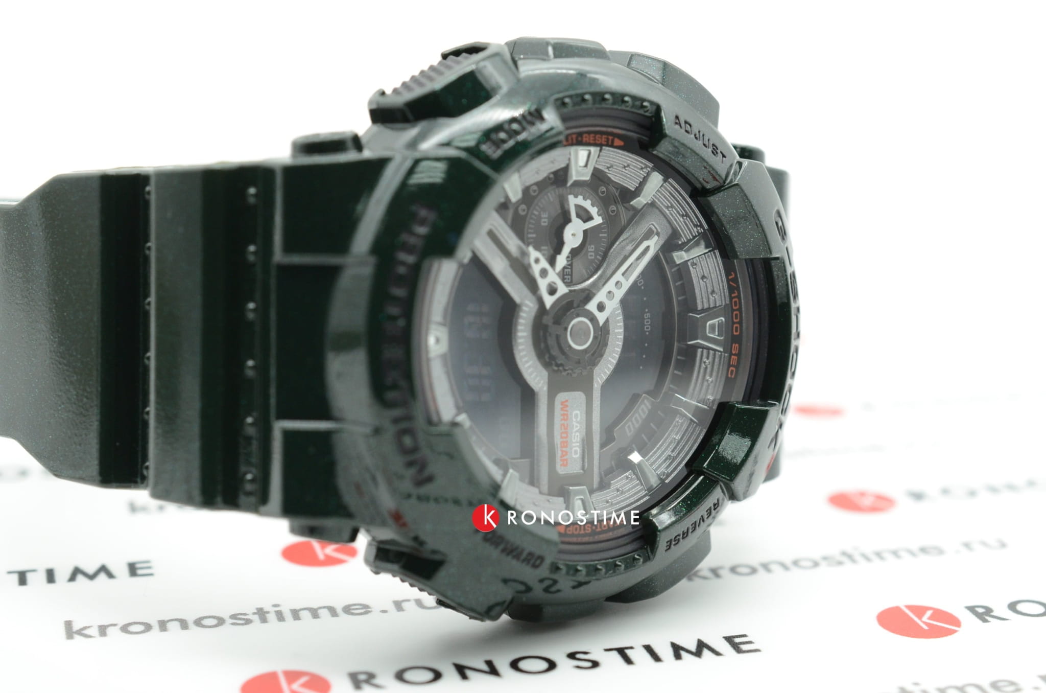 Тёмно-зелёная расцветка металлик великолепно гармонирует с хромовыми элементами циферблата. Несмотря на внушительный вес, модель отличается лёгким весом и комфортно сидит на запястье. Наручные часы обладают противоударным корпусомУдаропрочный корпусМеханизм заключён в корпус, выполненный из современных материалов, устойчивых к ударам, механическим повреждениям и падению с высоты: инновационный пластик, карбон, нержавеющая сталь, титан., который стойко переносит удары и падения с высоты. Он надёжно защищает японский кварцевый механизм, благодаря которому часы показывают время с абсолютной точностью. Батарейка рассчитана на 3 года работы. Автоматическая светодиодная подсветкаСветодиодная подсветкаСветодиодная или LED-подсветка обеспечивает появление яркого холодного свечения за счёт LED-элементов - маленьких лампочек. Они потребляют минимальное количество энергии, чаще всего можно встретить 1 светодиод, в нижней части циферблата. циферблата. Минеральное стекло. Сохранение водонепроницаемости до 20 бар. Функции: мировое времяМировое время Полезное часовое усложнение, отображающее время в основных городах и известных областях по всему миру, оно связано с часовыми поясами, удобно для путешественников и бизнесменов. , таймер обратного отсчёта, хронографХронографФункция позволяет измерять отрезки времени с особой точностью: часы, минуты, секунды. Верным признаком хронографа является наличие на циферблате 3 дополнительных окошек-счётчиков., будильник, автоматический календарь, UTCUTCВсемирное кординационное время, не имеющее привязки к географическому положению Гринвича, основывается на атомном отсчёте времени. Регулировка времени осуществляется более точно, чем устаревшее GMT.