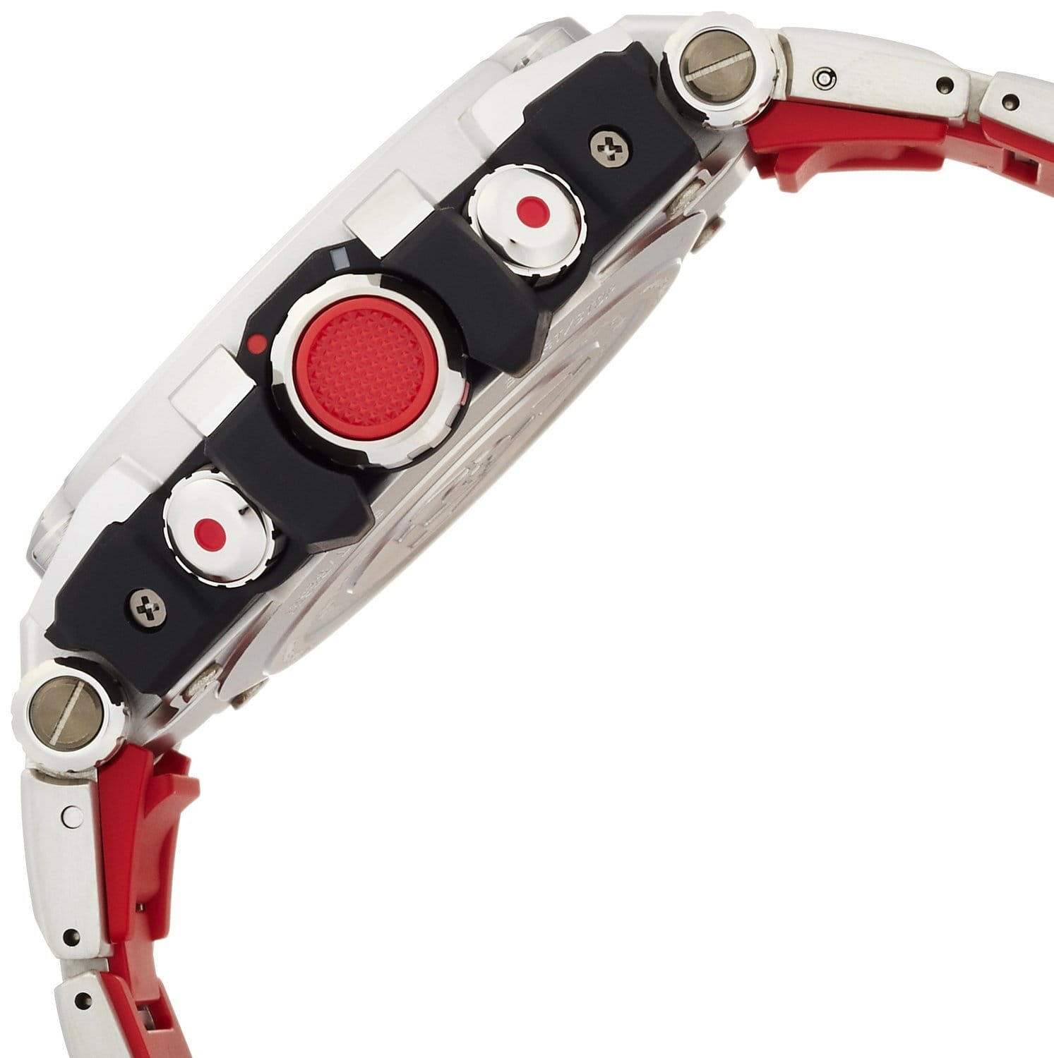 Современные мужские японские наручные часы. Премиум коллекция G-shock MT-G. Корпус и браслет выполнены из высокопрочной стали с аникоррозийными свойствами с пластиковыми вставками. Черный фон циферблата разбавлен объемными светлыми 3D индексами и красными элементами дизайна. Сапфировое стекло с антибликовым покрытием, устойчивое к появлению царапин. Часы снабжены множеством дополнительных функций - секундомер, полностью автоматическая подсветка с автоматической регулируемой автоматизацией. Ежечасный сигнал, повтор сигнала будильника, второй часовой пояс. Водонепроницаемость часов до 200 метров (возможны занятия дайвингом). Ударопрочные и магнитоустойчивые, источник энергии солнечная батарея.