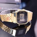 Спортивные часы на каждый день в популярном ретро-стиле. Корпус - Пластиковый; Стекло - Пластик; Водозащита - 30 м. (WR 30); Материал ремешка - Нержавеющая сталь, PVD покрытие; Цвет ремешка - Золотистый; Цвет циферблата - Lcd.