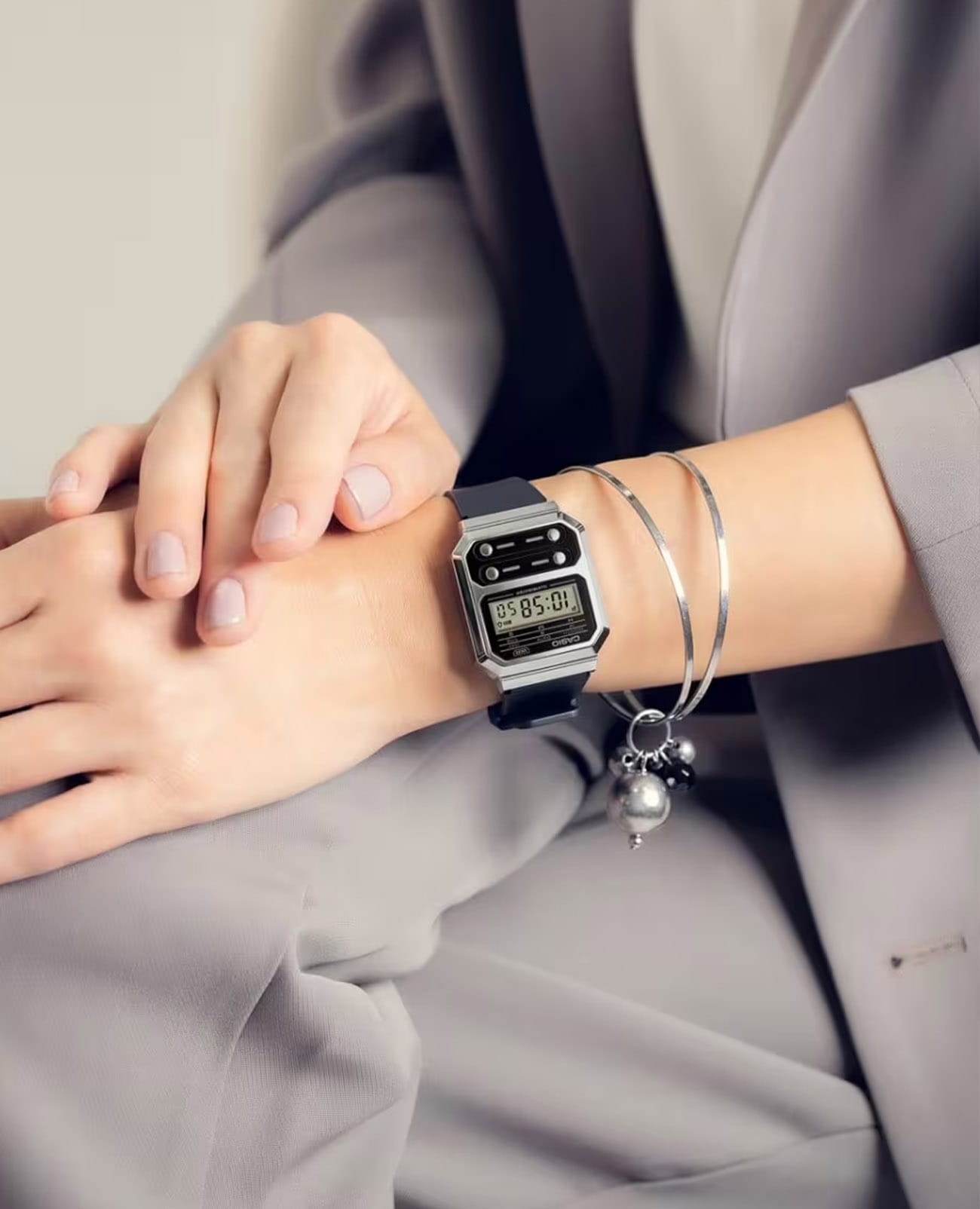 Мужские наручные часы лимитированной серии Casio Vintage A100WEF-1A, кварцевый механизм с высокой точностью. Класс водозащиты: 30 метров, позволит защитить корпус от случайных брызг или капель дождя. Часы оснащены секундомеромСекундомерСекундоме́р — прибор, способный измерять интервалы времени с точностью до долей секунды..