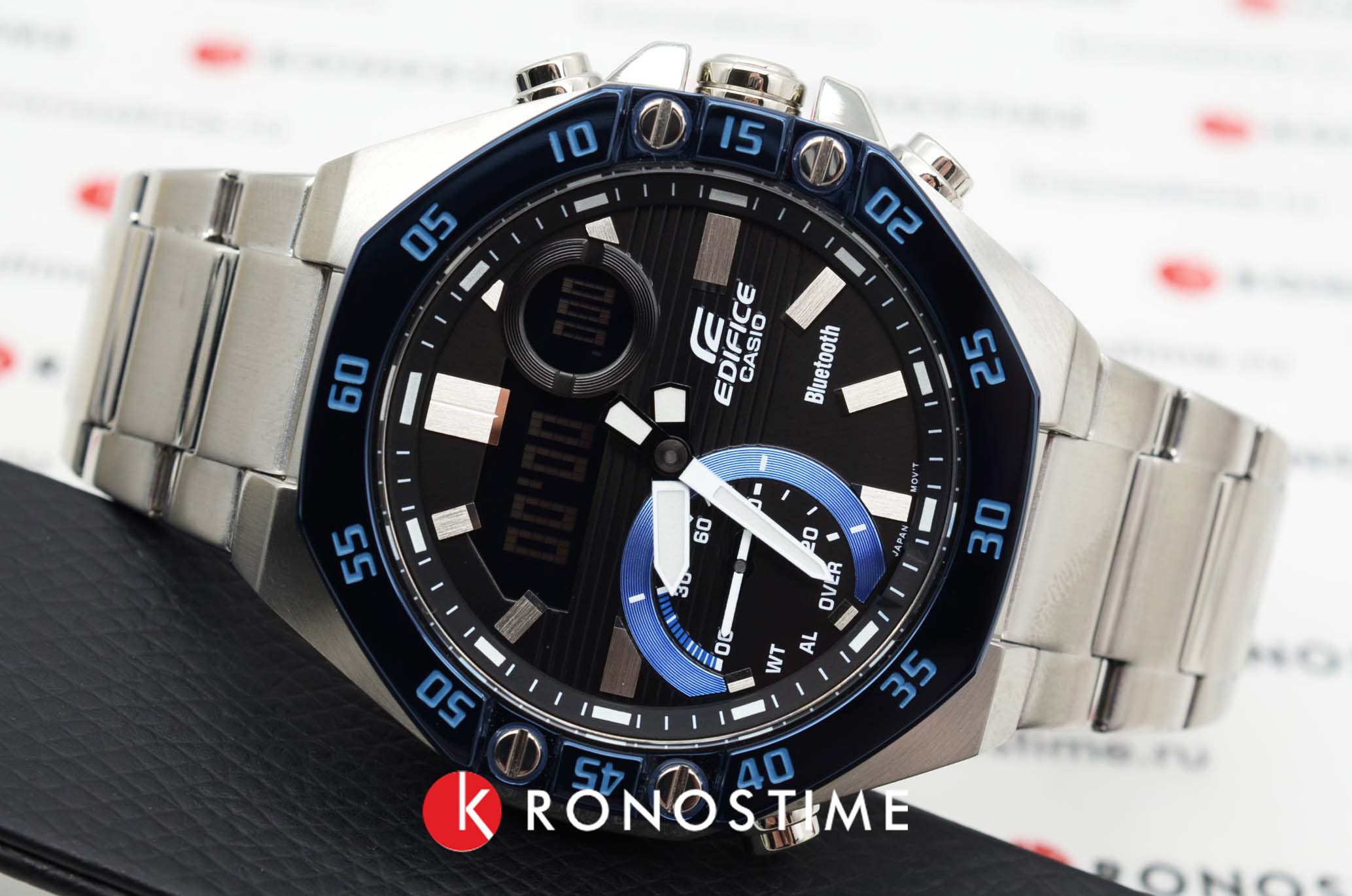 Casio Edifice ECB-10DB-1B – современные мужские часы, сочетающие спортивный дизайн и передовые технологии. Корпус размером 51×48,5 мм и толщиной 12,5 мм выполнен из нержавеющей стали, обеспечивая прочность и долговечность. Чёрный циферблат с аналогово-цифровым отображением времени защищён минеральным стекломМинеральное стеклоМинеральное стекло представляет собой искусственно выращенный минерал кварца. Такое стекло отличается особой устойчивостью к повреждениям и царапинам. Уступает по некоторым качествам сапфировому стеклу., устойчивым к царапинам.