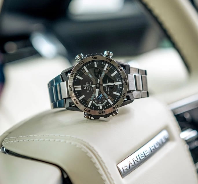 Многофункциональные японские мужские часы Casio Edifice ECB-2000DС-1A.Супер стильный релиз в коллекции Edifice из топовой аналого-цифровой серии ECB-2000. Среди функций питание от солнечной энергии Tough SolarTough SolarТехнология основана на подзарядке аккумулятора от источника солнечного света, специальная панель улавливает солнечные лучи и преобразует их в энергию для работы часов. Достаточно пары минут нахождения на солнце для функционирования часов в течении суток., автоматическое сохранение энергии. Время работы аккумулятора без подзарядки приблизительно 7 месяцев, при включенной функции сохранения энергии приблизительно 18 месяцев. Двойная светодиодная подсветка Super Illuminator с функцией Afterglow. Цвет подсветки: белый. 12-ти и 24-х часовой формат времени. Секундомер с двумя точностями показаний: 1/100с (до 1ч) и 1с (после 1ч) и временем измерения 24ч. SPLIT-хронографСплит-хронографИспользуется для измерения продолжительности нескольких временных отрезков, начинающихся одновременно, а заканчивающихся в разное время.. Таймер обратного отсчета от 1с до 24ч. Мировое времяМировое время Полезное часовое усложнение, отображающее время в основных городах и известных областях по всему миру, оно связано с часовыми поясами, удобно для путешественников и бизнесменов. – 38 часовых поясов, всемирное координированное время (UTCUTCВсемирное кординационное время, не имеющее привязки к географическому положению Гринвича, основывается на атомном отсчёте времени. Регулировка времени осуществляется более точно, чем устаревшее GMT.