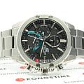 Ярко-бирюзовые цветовые акценты счётчиков гармонируют с тёмным фоном. Часы выполнены в спортивном стиле, ссылаясь на дизайн эксклюзивных спорткаров и автомобильных деталей. Они основаны на технологии , оснащены расширенными функциональными возможностями: BluetoothBluetoothСовременная технология, позволяющая синхронизировать часы с телефоном и переносить данные. Часы с Bluetooth расширяют возможности вашего смартфона и делают его использование ещё более удобным. нового поколения с низким потреблением энергии, автоматический календарь, хронографХронографФункция позволяет измерять отрезки времени с особой точностью: часы, минуты, секунды. Верным признаком хронографа является наличие на циферблате 3 дополнительных окошек-счётчиков., секундомер, индикатор последнего круга дистанции Last Lap Indicator, мировое время. Модель комплектуется надёжным браслетом из нержавеющей стали. Заводная головка с защитой. Ударопрочный корпусУдаропрочный корпусМеханизм заключён в корпус, выполненный из современных материалов, устойчивых к ударам, механическим повреждениям и падению с высоты: инновационный пластик, карбон, нержавеющая сталь, титан.. Сапфировое стекло с антибликовым покрытием. Водонепроницаемость WR 100. Подсветка NeobriteПодсветка NeobriteИспользование светонакопительных составов на основе сульфида цинка или алюмината стронция, яркий свет можно наблюдать на протяжении 6-10 часов после «зарядки» часов около источника света.. Габариты: 49,9 x 45,6 x 8,9 мм.