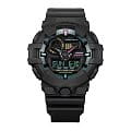 Перед вами редкие лимитированные джишоки 2024 года в черном матовом полимерном корпусе GA-700 с яркими неоновыми деталями циферблата! Практичная и функциональная модель в чёрном цвете имеет полимерный ударопрочный корпусУдаропрочный корпусМеханизм заключён в корпус, выполненный из современных материалов, устойчивых к ударам, механическим повреждениям и падению с высоты: инновационный пластик, карбон, нержавеющая сталь, титан., которому не страшны повреждения и падения с высоты. Высокоточный кварцевый механизм японского производства. Эксплуатационный срок батарейки - 5 лет. Яркая автоматическая светодиодная подсветкаСветодиодная подсветкаСветодиодная или LED-подсветка обеспечивает появление яркого холодного свечения за счёт LED-элементов - маленьких лампочек. Они потребляют минимальное количество энергии, чаще всего можно встретить 1 светодиод, в нижней части циферблата. белого цвета. Минеральное стеклоМинеральное стеклоМинеральное стекло представляет собой искусственно выращенный минерал кварца. Такое стекло отличается особой устойчивостью к повреждениям и царапинам. Уступает по некоторым качествам сапфировому стеклу. устойчивое к появлению царапин, обладающее высокой прозрачностью. Водонепроницаемость: 200 метров, позволит плавать, нырять и заниматься другими водными видами спорта. 12/24-часовая система отображения времени. Прочный пластиковый ремешок. ХронографХронографФункция позволяет измерять отрезки времени с особой точностью: часы, минуты, секунды. Верным признаком хронографа является наличие на циферблате 3 дополнительных окошек-счётчиков., секундомер, таймер, мировое времяМировое время Полезное часовое усложнение, отображающее время в основных городах и известных областях по всему миру, оно связано с часовыми поясами, удобно для путешественников и бизнесменов. , 5 будильников, UTCUTCВсемирное кординационное время, не имеющее привязки к географическому положению Гринвича, основывается на атомном отсчёте времени. Регулировка времени осуществляется более точно, чем устаревшее GMT.