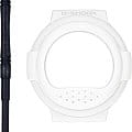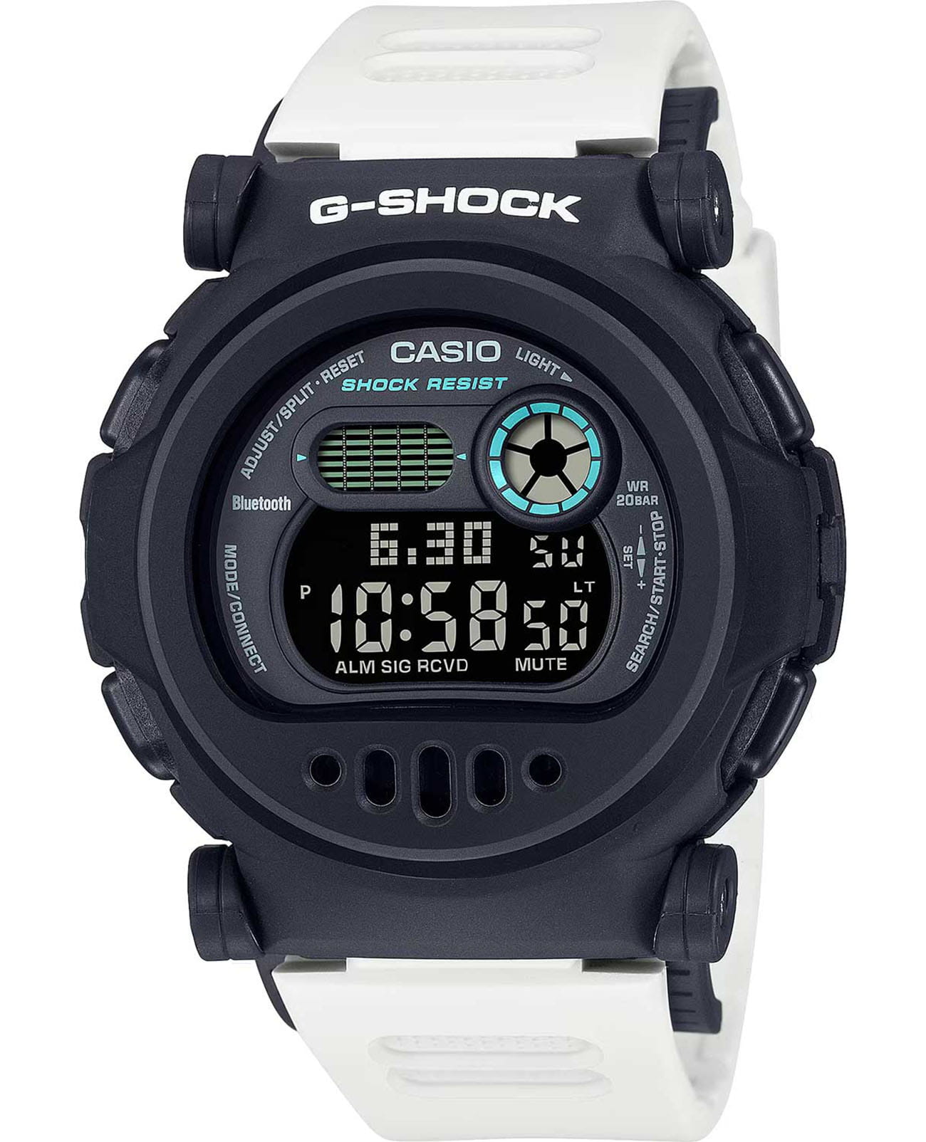 Модель Casio G-SHOCK G-B001SF-7 из коллекции "Sci-Fi World" представляет собой цифровые часы с футуристическим дизайном, вдохновленным научной фантастикой. Белый корпус с синими и фиолетовыми акцентами придает модели минималистичный и современный стиль. Корпус выполнен по технологии Carbon Core GuardCarbon Core Guard Новейшая структура корпуса, разработанная Casio. Полиуретановая пластина дополнительно усилена карбоновыми вставками, что придаёт специальную защиту от механических повреждений. Карбон отличается лёгкостью и прочностью., обеспечивающей повышенную прочность и устойчивость к ударам. Съемный уретановый безельБезельВнешний ободок, закрепляющий стекло. В спортивных часах так называется поворотное кольцо с делениями на циферблате, выполняет роль таймера – замеряет отрезки времени на шкале. Неподвижный безель – элемент декора. Однонаправленно вращающийся безель на дайверских часах позволяет фиксировать моменты погружения и выныривания на поверхность. позволяет менять внешний вид часов, открывая черный внутренний слой с люминесцентным эффектом. Часы оснащены Bluetooth®-синхронизациейBluetoothСовременная технология, позволяющая синхронизировать часы с телефоном и переносить данные. Часы с Bluetooth расширяют возможности вашего смартфона и делают его использование ещё более удобным., позволяющей подключаться к смартфону через приложение CASIO WATCHES. Функционал включает мировое времяМировое время Полезное часовое усложнение, отображающее время в основных городах и известных областях по всему миру, оно связано с часовыми поясами, удобно для путешественников и бизнесменов. с 38 часовыми поясами, секундомерСекундомерСекундоме́р — прибор, способный измерять интервалы времени с точностью до долей секунды. с точностью 1/100 секунды, таймер обратного отсчетаТаймерОтсчитывает секунды в обратном направлении в заданном интервале времени., 5 будильниковБудильникБуди́льник — часы, в заданный момент времени подающие звуковой, световой и/или в редких случаях другой сигнал. и светодиодную подсветку Super IlluminatorСветодиодная подсветкаСветодиодная или LED-подсветка обеспечивает появление яркого холодного свечения за счёт LED-элементов - маленьких лампочек. Они потребляют минимальное количество энергии, чаще всего можно встретить 1 светодиод, в нижней части циферблата. с автоматическим включением. Минеральное стеклоМинеральное стеклоМинеральное стекло представляет собой искусственно выращенный минерал кварца. Такое стекло отличается особой устойчивостью к повреждениям и царапинам. Уступает по некоторым качествам сапфировому стеклу. защищает дисплей от повреждений, а водонепроницаемость до 200 метров делает часы идеальными для плавания и активного отдыха. Casio G-SHOCK G-B001SF-7 — это сочетание передовых технологий, высокой прочности и инновационного дизайна, созданное для активных и стильных людей.