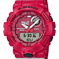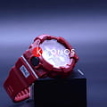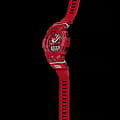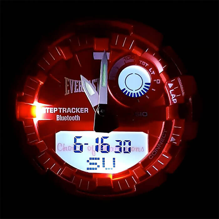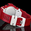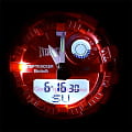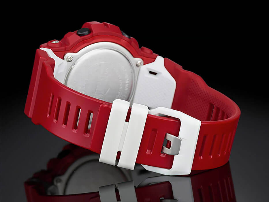 Внешний вид напоминает о боксерских перчатках. Ярко-красный аксессуар подходит для людей, которые следят за здоровьем и регулярно посещают тренировки. Этому способствует шагомер со звуковым напоминанием об отсутствии активности и технология BluetoothBluetoothСовременная технология, позволяющая синхронизировать часы с телефоном и переносить данные. Часы с Bluetooth расширяют возможности вашего смартфона и делают его использование ещё более удобным. с низким потреблением энергии. Часы синхронизируются с приложением G-SHOCK Connected Phone, в котором можно установить ежедневную норму шагов, рассчитать сожжённые калории. Японский кварцевый механизм получает питание от аккумулятора, рассчитанного на 2 года службы. Противоударный корпусУдаропрочный корпусМеханизм заключён в корпус, выполненный из современных материалов, устойчивых к ударам, механическим повреждениям и падению с высоты: инновационный пластик, карбон, нержавеющая сталь, титан. из пластика. Функция перемещения стрелок для лёгкого доступа к данным на цифровых дисплеях. Включение и выключение звука кнопок. Полимерный ремешок. Минеральное стекло. Водонепроницаемость 200 метров. Автоматическая светодиодная подсветкаСветодиодная подсветкаСветодиодная или LED-подсветка обеспечивает появление яркого холодного свечения за счёт LED-элементов - маленьких лампочек. Они потребляют минимальное количество энергии, чаще всего можно встретить 1 светодиод, в нижней части циферблата., стрелки с люминесцентным покрытием NeobriteПодсветка NeobriteИспользование светонакопительных составов на основе сульфида цинка или алюмината стронция, яркий свет можно наблюдать на протяжении 6-10 часов после «зарядки» часов около источника света.. Возможности: секундомер с памятью на 200 кругов, мировое времяМировое время Полезное часовое усложнение, отображающее время в основных городах и известных областях по всему миру, оно связано с часовыми поясами, удобно для путешественников и бизнесменов. , таймер обратного отсчёта, 5 будильников, календарь до 2099 года, хронографХронографФункция позволяет измерять отрезки времени с особой точностью: часы, минуты, секунды. Верным признаком хронографа является наличие на циферблате 3 дополнительных окошек-счётчиков.. Габариты: 54,1 x 48,6 x 15,5 мм.