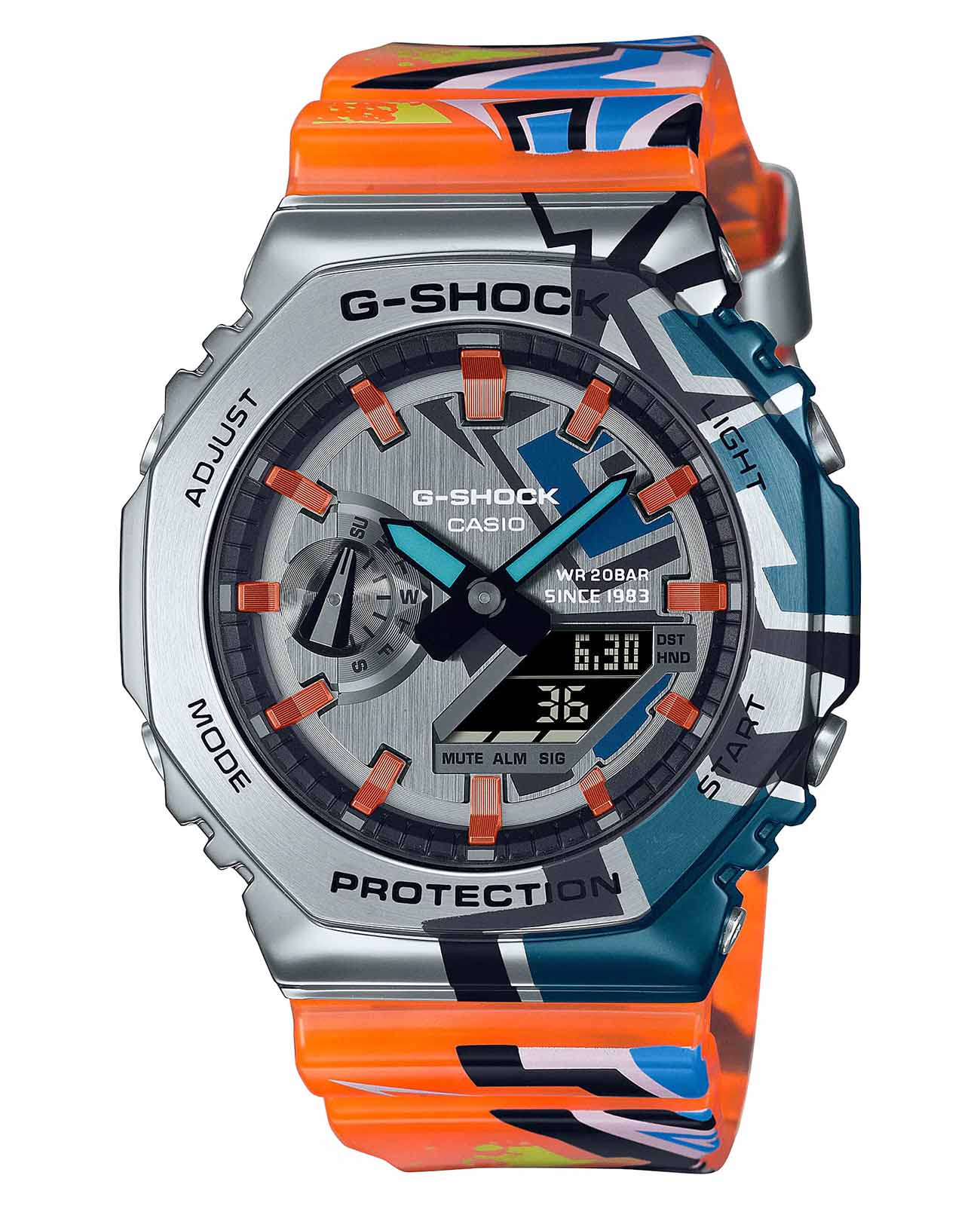 Ударопрочные часы с функциональной начинкой прекрасно подойдут для любителей активного образа жизни. Японские лимитированные мужские часы c хронографомХронографФункция позволяет измерять отрезки времени с особой точностью: часы, минуты, секунды. Верным признаком хронографа является наличие на циферблате 3 дополнительных окошек-счётчиков. Casio G-Shock GM-2100SS-1A, кварцевый механизм с высокой точностью. Класс водозащиты: 200 метров, позволит плавать, нырять и заниматься другими водными видами спорта. Ударопрочный корпусУдаропрочный корпусМеханизм заключён в корпус, выполненный из современных материалов, устойчивых к ударам, механическим повреждениям и падению с высоты: инновационный пластик, карбон, нержавеющая сталь, титан. часов изготовлен из стали. Дизайн этих ярких часов вдохновлен уличным искусством граффити. Ударопрочный корпусУдаропрочный корпусМеханизм заключён в корпус, выполненный из современных материалов, устойчивых к ударам, механическим повреждениям и падению с высоты: инновационный пластик, карбон, нержавеющая сталь, титан. защищает механизм от ударов и вибрации. Функция парный иллюминатор обеспечивает подсветку не только аналогового циферблата, но и цифрового дисплея. Настраиваемое послесвечение 1,5 или 3сек. Цвет подсветки: белый. Подсветка NeobriteПодсветка NeobriteИспользование светонакопительных составов на основе сульфида цинка или алюмината стронция, яркий свет можно наблюдать на протяжении 6-10 часов после «зарядки» часов около источника света. обеспечивает длительное послесвечение в темноте даже после кратковременного нахождения на свету. 12-ти и 24-х часовой формат времени. СекундомерСекундомерСекундоме́р — прибор, способный измерять интервалы времени с точностью до долей секунды. с двумя точностями показаний: 1/100с (до 1ч) и 1с (после 1ч) и временем измерения 24ч. Сплит-хронографСплит-хронографИспользуется для измерения продолжительности нескольких временных отрезков, начинающихся одновременно, а заканчивающихся в разное время.. ТаймерТаймерОтсчитывает секунды в обратном направлении в заданном интервале времени. обратного отсчета от 1с до 24ч. Мировое времяМировое время Полезное часовое усложнение, отображающее время в основных городах и известных областях по всему миру, оно связано с часовыми поясами, удобно для путешественников и бизнесменов. – 48 городов (31 часовой пояс), всемирное координированное время (UTCUTCВсемирное кординационное время, не имеющее привязки к географическому положению Гринвича, основывается на атомном отсчёте времени. Регулировка времени осуществляется более точно, чем устаревшее GMT.