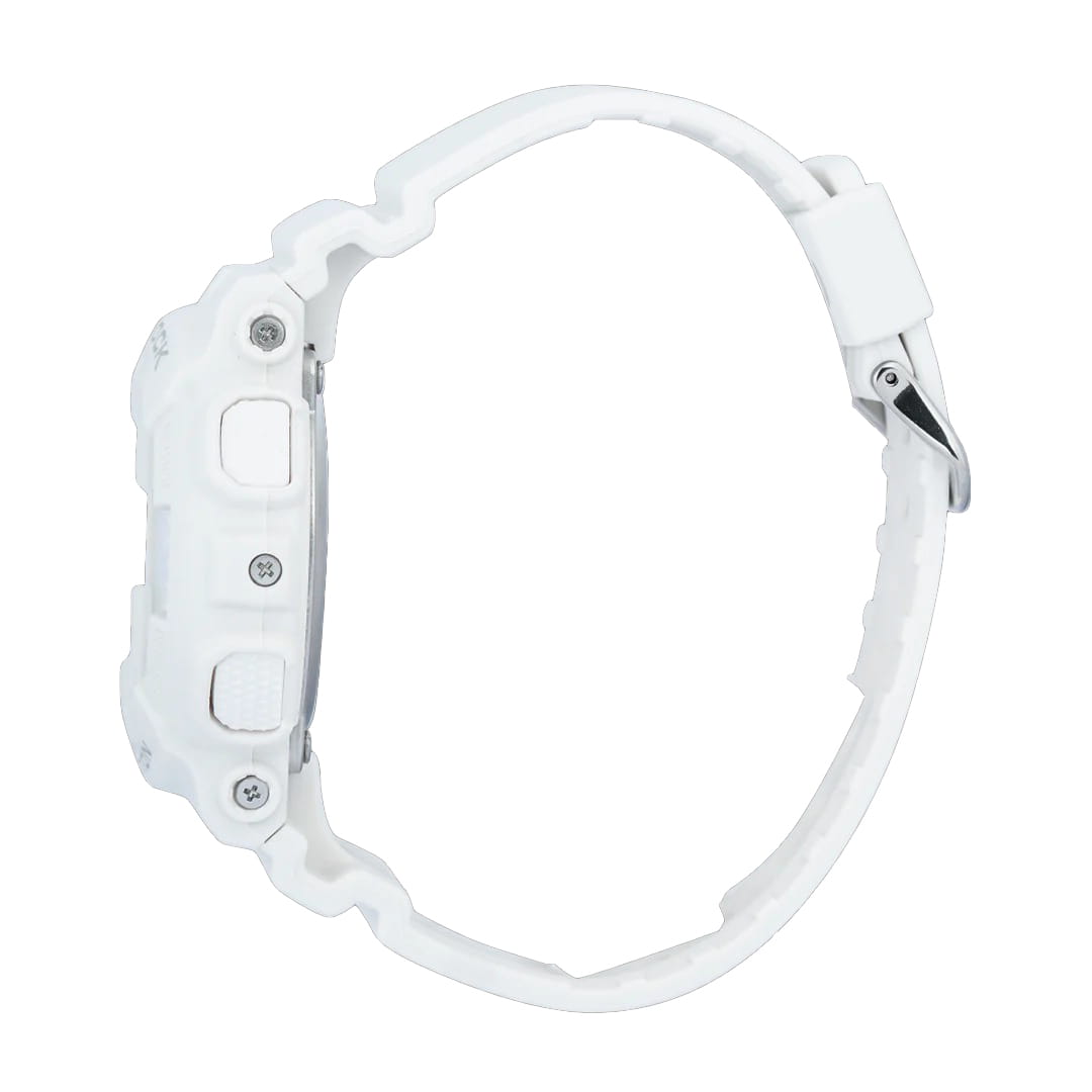 Компактный аксессуар имеет дизайн в скелетонизорованном формате. Полимерный корпус и ремешок белого цвета. Циферблат с минеральным стеклом наделён винтажными элементами: окошки и стрелки оформлены в духе музыкальных проигрывателей эпохи 90-х. Модель обладает противоударным корпусомУдаропрочный корпусМеханизм заключён в корпус, выполненный из современных материалов, устойчивых к ударам, механическим повреждениям и падению с высоты: инновационный пластик, карбон, нержавеющая сталь, титан., выдерживающим удары, вибрации, падение с высоты. Наручные часы станут идеальным вариантом для девушки, придерживающейся активного образа жизни. Японский кварцевый калибр характеризуется точностью хода +/- 15 секунд в месяц. Он работает от батарейки с 2-летним сроком службы. Часы подходят для плавания и ныряния, так как сохраняют водонепроницаемость при давлении до 20 бар. Циферблат подсвечивается LED-диодом Светодиодная подсветкаСветодиодная или LED-подсветка обеспечивает появление яркого холодного свечения за счёт LED-элементов - маленьких лампочек. Они потребляют минимальное количество энергии, чаще всего можно встретить 1 светодиод, в нижней части циферблата., функция автоподсветки активируется при поднесении часов к лицу. Функции: секундомер с точностью в 1/1000 секунды, хронографХронографФункция позволяет измерять отрезки времени с особой точностью: часы, минуты, секунды. Верным признаком хронографа является наличие на циферблате 3 дополнительных окошек-счётчиков., будильник, мировое времяМировое время Полезное часовое усложнение, отображающее время в основных городах и известных областях по всему миру, оно связано с часовыми поясами, удобно для путешественников и бизнесменов. – 48 городов, календарь, таймер, индикация средней скорости пройденного маршрута. Габариты: 49 x 45,9 x 15,8 мм.
