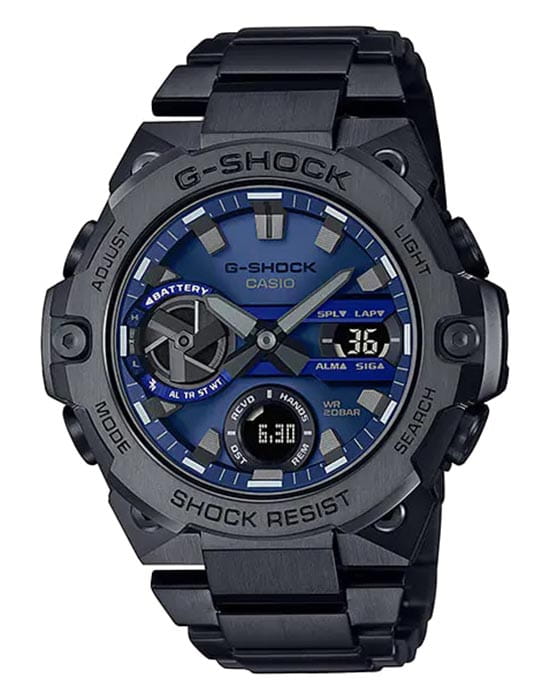 Японские женские часы Casio G-Shock GST-B400BD-1A2, электронный механизм с высокой точностью. Класс водозащиты: 200 метров, позволит плавать, нырять и заниматься другими водными видами спорта. Корпус часов изготовлен из стали, цвета.