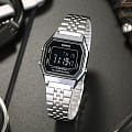 Модель LA680WA-1BDF из коллекции Vintage сочетает изысканный ретро-дизайн и современные функции. Компактный корпус из полимерного материала с хромированным покрытием и браслет из нержавеющей стали с регулируемой застёжкойРаскладная застёжкаТакой тип застёжки используется только на браслетах из металла. Она никогда не раскрывается полностью, происходит разделение на 2 и более частей. Раскладывающая застёжка снизит вероятность потери часов к минимуму. обеспечивают удобство и долговечность.