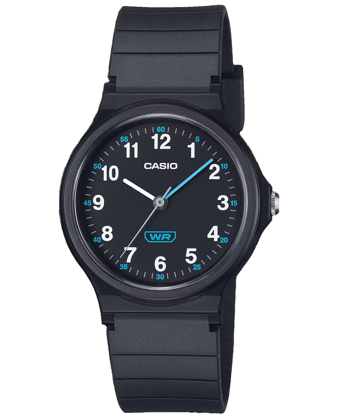 Комфортные наручные часы от Casio выполнены из высокопрочных полимерных материалов. На черном циферблате традиционной формы расположены отчетливые арабские цифры. Тип механизма - кварцевый. Срок службы батарейки составляет 3 года. Благодаря небольшому весу в 17 грамм, аксессуар не будет создавать ощущения тяжести на руке.