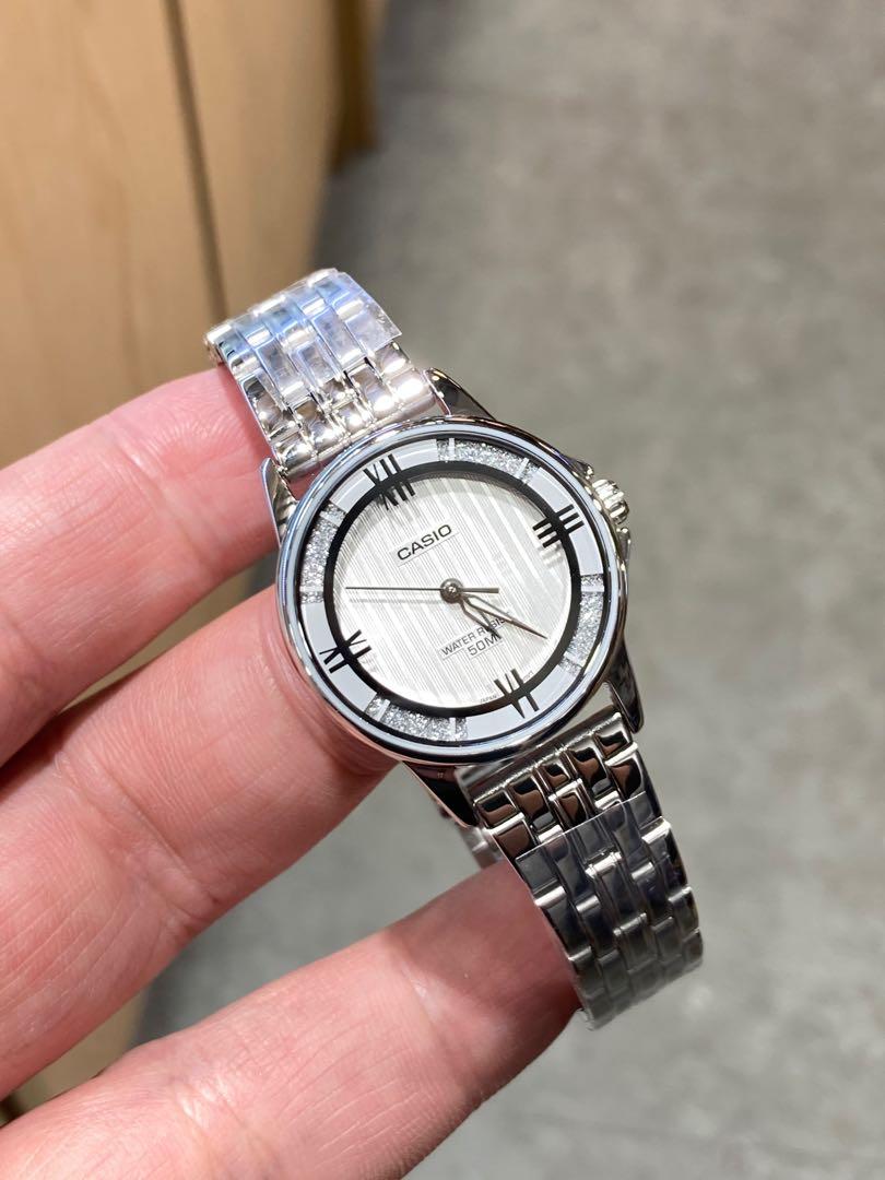 Японские женские часы Casio Collection LTP-1391D-7A2 изящно смотрятся на запястье, они привлекают классическим исполнением и правильной геометрией. Минималистичная модель станет отличным решением для любого случая: на работу, переговоры с деловыми партнёрами, прогулку с друзьями или праздничный вечер. Отсутствуют лишние детали, что позволяет часам быть актуальными на долгие годы. Циферблат с люминесцентным покрытиемЛюминесцентное покрытиеПозволяет считывать показания времени в темноте. Производители наносят на стрелки, часовые индексы, безель или поверхность циферблата светонакопительный состав, дающий холодное свечение. стрелок, дополнен минеральным стекломМинеральное стеклоМинеральное стекло представляет собой искусственно выращенный минерал кварца. Такое стекло отличается особой устойчивостью к повреждениям и царапинам. Уступает по некоторым качествам сапфировому стеклу. , устойчивым к мелким механическим повреждениям. Модель комплектуется надёжным механизмом, точность хода которого составляет +/- 20 сек/мес. Класс водозащиты: 50 метров, позволит защитить корпус от случайных брызг или капель дождя. Циферблат с метками в виде штрихов и римских цифр. Стальной браслет на раскладной застёжкеРаскладная застёжкаТакой тип застёжки используется только на браслетах из металла. Она никогда не раскрывается полностью, происходит разделение на 2 и более частей. Раскладывающая застёжка снизит вероятность потери часов к минимуму..