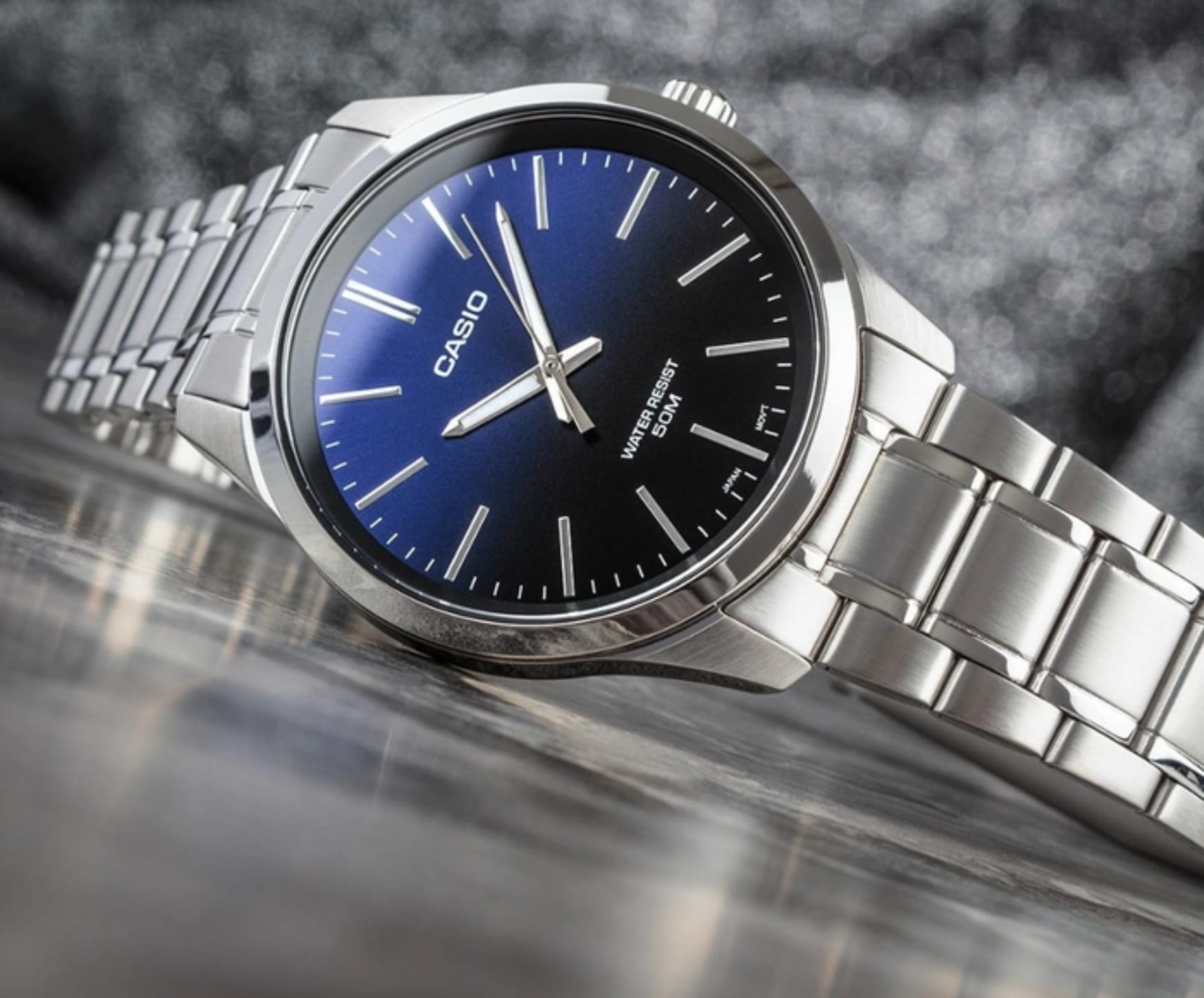 Японские мужские наручные часы с минеральным стекломМинеральное стеклоМинеральное стекло представляет собой искусственно выращенный минерал кварца. Такое стекло отличается особой устойчивостью к повреждениям и царапинам. Уступает по некоторым качествам сапфировому стеклу. Casio Collection MTP-E180D-2A, кварцевый механизм с высокой точностью. Окошко даты с увеличительным стеклом. Класс водозащиты: 50 метров, позволит защитить корпус от случайных брызг или капель дождя. Корпус часов изготовлен из стали. Стальной браслет на раскладной застёжкеРаскладная застёжкаТакой тип застёжки используется только на браслетах из металла. Она никогда не раскрывается полностью, происходит разделение на 2 и более частей. Раскладывающая застёжка снизит вероятность потери часов к минимуму..