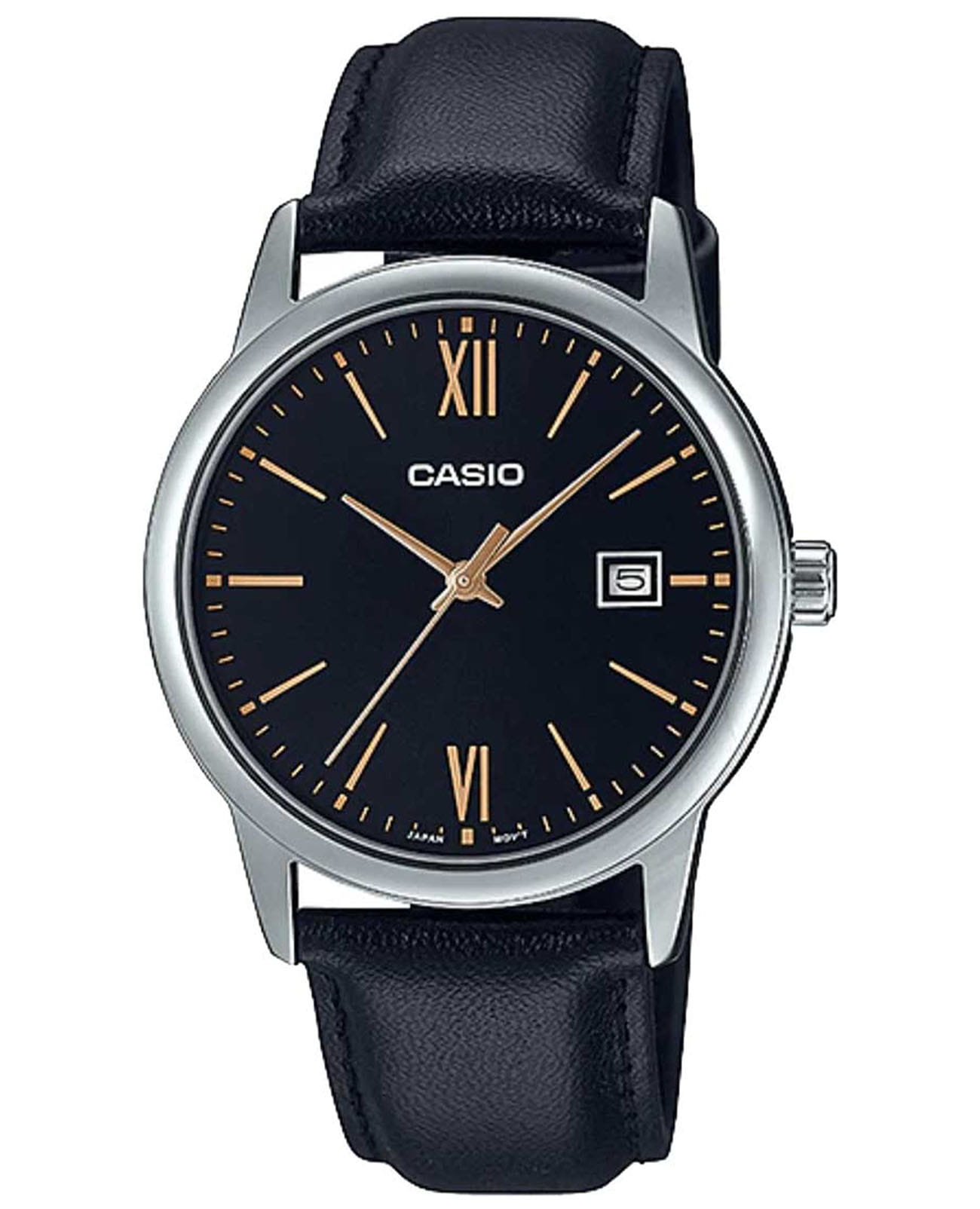 Японские мужские часы с минеральным стекломМинеральное стеклоМинеральное стекло представляет собой искусственно выращенный минерал кварца. Такое стекло отличается особой устойчивостью к повреждениям и царапинам. Уступает по некоторым качествам сапфировому стеклу. Casio Collection MTP-V002L-1B3, кварцевый механизм с высокой точностью. Корпус часов изготовлен из стали. Циферблат выполнен по технологии Sunray (солнечные лучи). Метки в виде штрихов и двух римских цифр. Батарейка рассчитана на 3 года. Ремешок с классической застежкой.