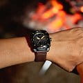 Часы премиум-класса для искателей приключений. Питание от солнечной энергии Tough SolarTough SolarТехнология основана на подзарядке аккумулятора от источника солнечного света, специальная панель улавливает солнечные лучи и преобразует их в энергию для работы часов. Достаточно пары минут нахождения на солнце для функционирования часов в течении суток. - солнечные батарейки большой мощности, индикатор заряда батареи. Функция автоматического сохранения энергии. Время работы аккумулятора без подзарядки - 6 месяцев, при включенной функции сохранения энергии - 25 месяцев. Модуль часов рассчитан на работу при низких температурах до -10°С/14°F. Двойная подсветка: одно нажатие кнопки обеспечит подсветку не только цифрового дисплея, но и аналогового циферблата. Благодаря наличию функции задержки, после отпускания кнопки освещение горит еще несколько секунд. Настраиваемое послесвечение 1,5 или 3сек. Цвет подсветки: белый. Необритовое светонакопительноеПодсветка NeobriteИспользование светонакопительных составов на основе сульфида цинка или алюмината стронция, яркий свет можно наблюдать на протяжении 6-10 часов после «зарядки» часов около источника света. покрытие обеспечивает длительное послесвечение в темноте даже после кратковременного нахождения на свету. 12-ти и 24-х часовой формат времени. СекундомерСекундомерСекундоме́р — прибор, способный измерять интервалы времени с точностью до долей секунды. с точностью показаний 1/100с и временем измерения 24ч. Сплит-хронографСплит-хронографИспользуется для измерения продолжительности нескольких временных отрезков, начинающихся одновременно, а заканчивающихся в разное время.. ТаймерТаймерОтсчитывает секунды в обратном направлении в заданном интервале времени. обратного отсчета от 1мин до 1ч. Мировое время Мировое время Полезное часовое усложнение, отображающее время в основных городах и известных областях по всему миру, оно связано с часовыми поясами, удобно для путешественников и бизнесменов. – 29 городов (29 часовых поясов), всемирное координированное время (UTCUTCВсемирное кординационное время, не имеющее привязки к географическому положению Гринвича, основывается на атомном отсчёте времени. Регулировка времени осуществляется более точно, чем устаревшее GMT.