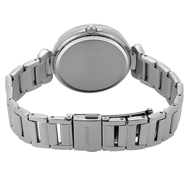 Женские японские часы Casio Sheen SHE-3061SG-4AUDR, кварцевый механизм с высокой точностью. Класс водозащиты: 50 метров, позволит защитить корпус от случайных брызг или капель дождя. Круглый стальной корпус изготовлен из нержавеющей стали. Безель с IP-покрытиемIP-покрытиеМетод ионного напыления. Демонстрирует повышенную устойчивость к истиранию, окислению и химическим веществам. Под воздействием высокого давления и температуры около 1500°C молекулы металла надёжно соединяются с частицами корпуса часов. украшенный кристаллами. Стрелки с люминесцентной подсветкойЛюминесцентное покрытиеПозволяет считывать показания времени в темноте. Производители наносят на стрелки, часовые индексы, безель или поверхность циферблата светонакопительный состав, дающий холодное свечение.. На маленьких циферблатах информация о дате. Рифленая заводная головка. Полированный стальной браслет имеет раскладывающуюся застежку.
