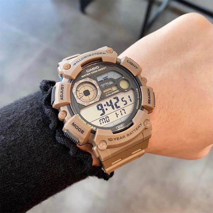 Японские мужские наручные часы Casio WS-1500H-5A c кварцевым механизмом высокой точности. Корпус часов изготовлен из полимерного пластика серебристого цвета. Функции: Мировое времяМировое время Полезное часовое усложнение, отображающее время в основных городах и известных областях по всему миру, оно связано с часовыми поясами, удобно для путешественников и бизнесменов. , светодиодная подсветкаСветодиодная подсветкаСветодиодная или LED-подсветка обеспечивает появление яркого холодного свечения за счёт LED-элементов - маленьких лампочек. Они потребляют минимальное количество энергии, чаще всего можно встретить 1 светодиод, в нижней части циферблата., секундомерСекундомерСекундоме́р — прибор, способный измерять интервалы времени с точностью до долей секунды., таймерТаймерОтсчитывает секунды в обратном направлении в заданном интервале времени., будильникБудильникБуди́льник — часы, в заданный момент времени подающие звуковой, световой и/или в редких случаях другой сигнал., автоматический календарь, 12/24 отображение времени. Продолжительное время работы аккумулятора - 10 лет. Органическое стекло, корпус и ремешок из полимерного пластика, водонепроницаемость 100 метров, позволит плавать, нырять и заниматься другими водными видами спорта