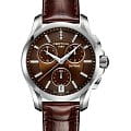 На метке 12 часов размещено 3 бриллианта оттенка Top Wesselton. ХронографХронографФункция позволяет измерять отрезки времени с особой точностью: часы, минуты, секунды. Верным признаком хронографа является наличие на циферблате 3 дополнительных окошек-счётчиков. характеризуется высокой точностью хода благодаря швейцарскому кварцевому механизму ETA G10.211. Ремешок выполнен из натуральной кожи, сапфировое стекло отличается антибликовой обработкой.
