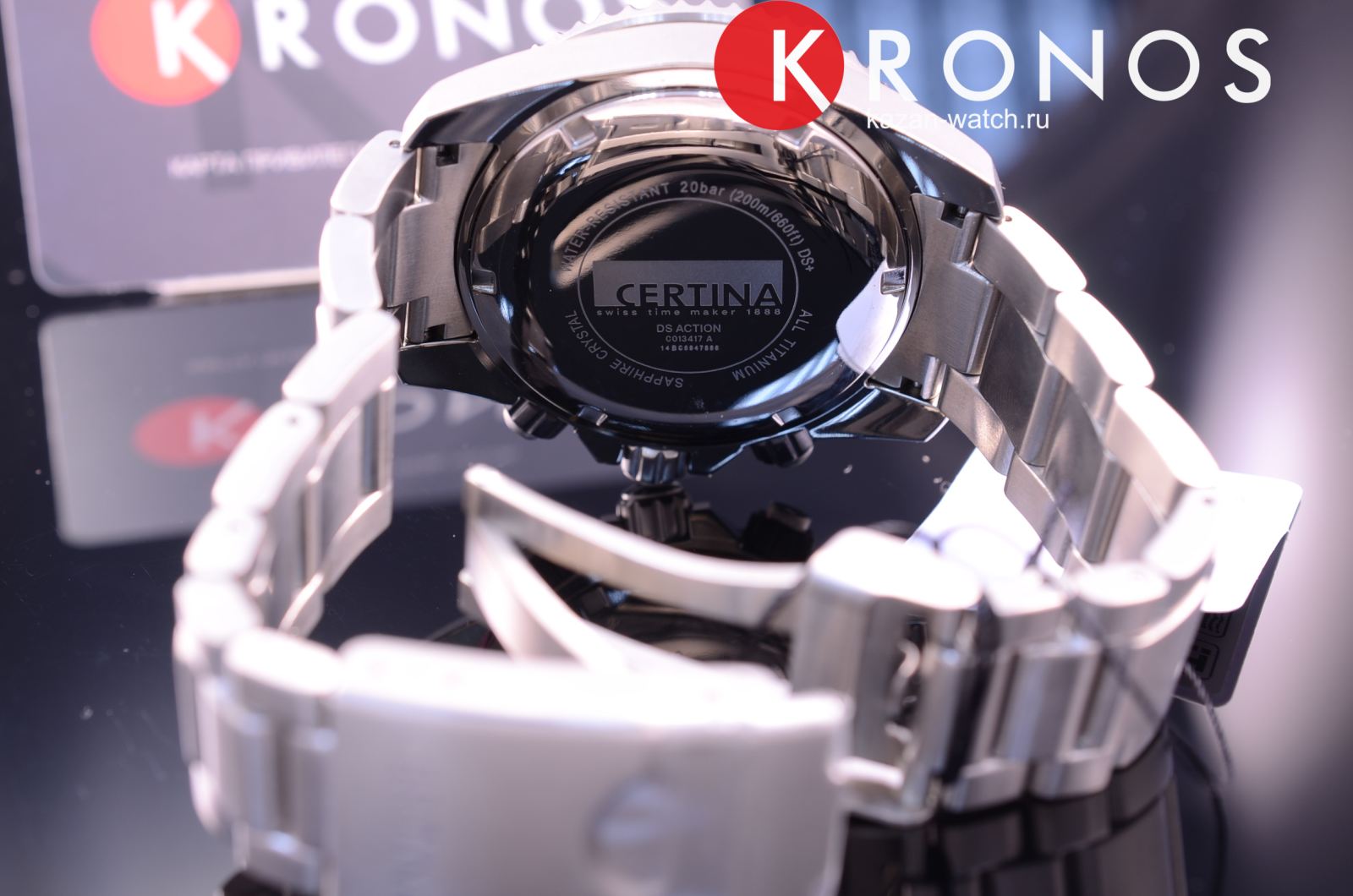 Часы Certina – это воплощение высочайшей точности и надежности часов, система DS расшифровывается Double Security; "двойная надежность". Беспрекословная точность и надежность, использование сложных технологий, инновационный подход в сочетании с традициями создания хронографов, которые марка пронесла через десятилетия, – все это позволяет компании предоставлять элитные, роскошные и стильные часы. На обратной стороне нанесено изображение черепахи в знак долговечности. Задняя крышка с повышенной прочностью, два кольца с уплотнением на заводной головке. DS - означает «Double Security» или «двойная защита». Эта фирменная концепция предусматривает оснащение часов ударопрочным корпусом, сапфировым стеклом, специальными уплотнениями на оси, заводной головке и задней крышке корпуса. Система DS придает часам исключительную стойкость в самых экстремальных условиях.