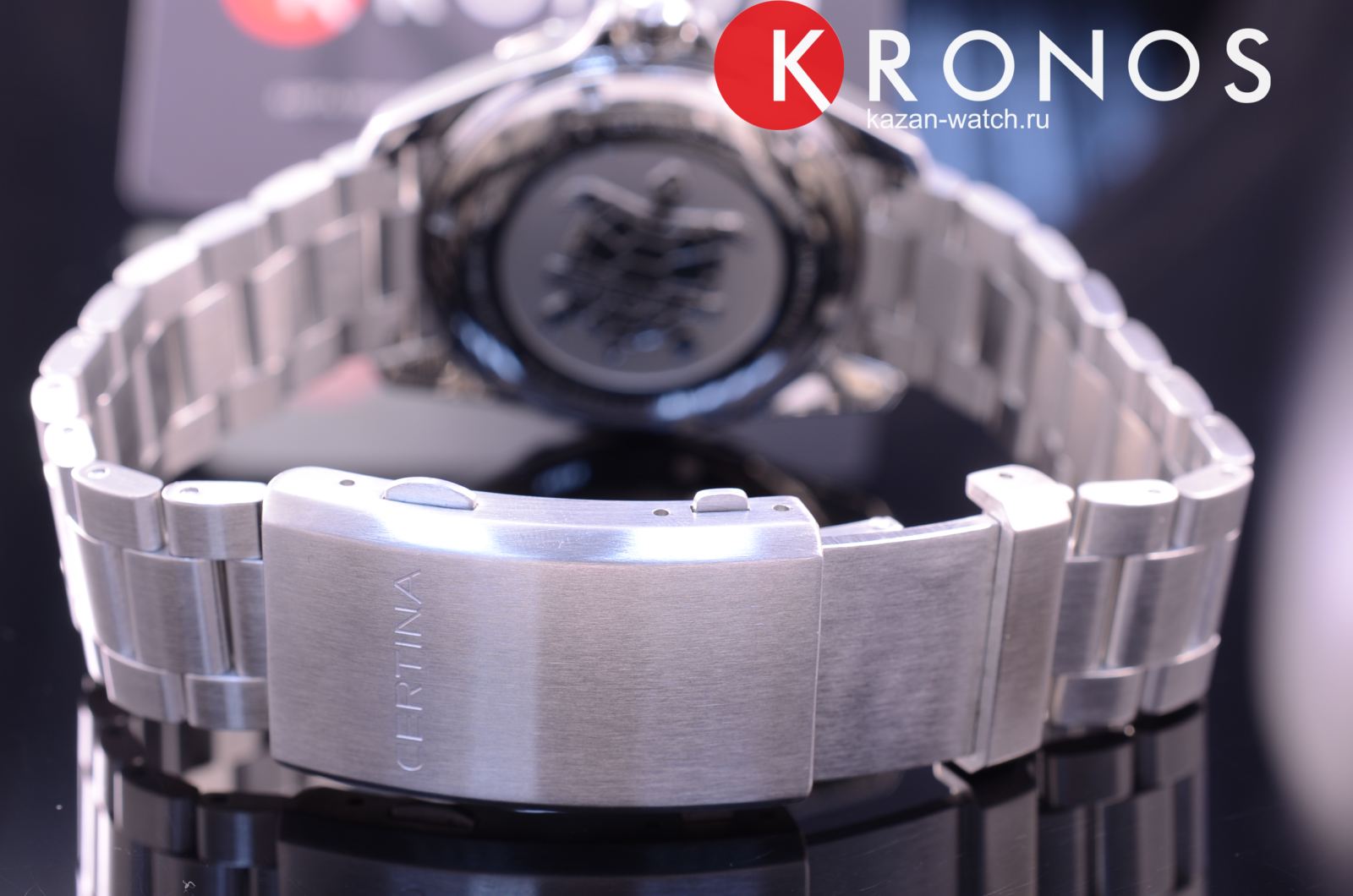 Часы отражают концепцию долговечности и практичности, использование инновационных материалов и высокоточного швейцарского калибра ETA F07.411 Precidrive™Precidrive™Инновационный кварцевый механизм Certina. Часы, оснащённые этим швейцарским калибром, приравниваются к точности к сертифицированным хронометрам, точность хода составляет +/-10 секунд в год. позволяет часам стильно выглядеть и сохранять безупречную работоспособность. Ударопрочный корпусУдаропрочный корпусМеханизм заключён в корпус, выполненный из современных материалов, устойчивых к ударам, механическим повреждениям и падению с высоты: инновационный пластик, карбон, нержавеющая сталь, титан. и браслет из стали, устойчивой к царапинам и повреждениям. Сапфировое стекло. Система Double SecurityDS ConceptDouble Security Concept, обозначает двойную надёжность и безупречную точность часов Certina. Двойная система защиты подразумевает обеспечение максимальной устойчивости к ударам и высоких показателей водонепроницаемости.. Вращающийся безельБезельВнешний ободок, закрепляющий стекло. В спортивных часах так называется поворотное кольцо с делениями на циферблате, выполняет роль таймера – замеряет отрезки времени на шкале. Неподвижный безель – элемент декора. Однонаправленно вращающийся безель на дайверских часах позволяет фиксировать моменты погружения и выныривания на поверхность.. Водонепроницаемость WR 300. Апертура даты, функция EOLEOLПредставляет собой систему, уведомляющую владельца часов о необходимости замены элемента питания. За 2 недели до полного разряда батарейки секундная стрелка перестаёт ходить чётко и начинает перепрыгивать на 3-4 деления.. «Умная» застёжка с удлинением для дайверовУдлинение для дайверовЗастёжка с удлинением для дайверов представляет собой безопасное крепление, которое позволяет надевать часы поверх гидрокостюма. Гибкая застёжка удлиняется на 1-2 миллиметра.. Диаметр корпуса: 41 мм.