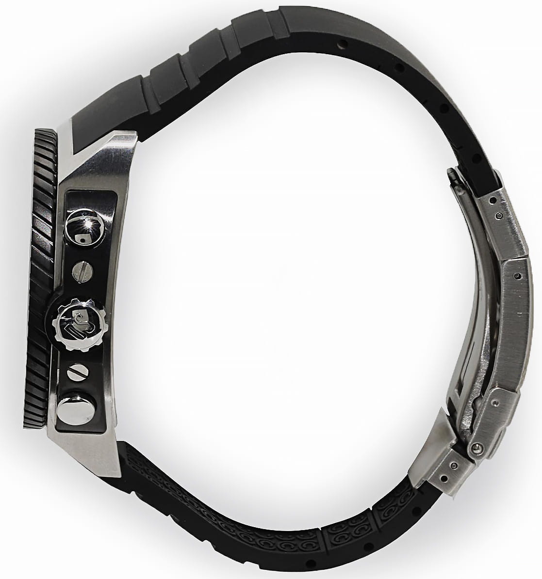 Стильные фирменные часы станут отличным дополнением к вашему повседневному образу. Мужские наручные часы-хронографХронографФункция позволяет измерять отрезки времени с особой точностью: часы, минуты, секунды. Верным признаком хронографа является наличие на циферблате 3 дополнительных окошек-счётчиков. с секундомеромСекундомерСекундоме́р — прибор, способный измерять интервалы времени с точностью до долей секунды. и тахиметромТахиметрРазмеченная шкала, располагается на ободке или безеле часов. Тахиметр позволяет рассчитать скорость на определённом участке пути, расстояние измеряется в километрах или милях.. Круглый стальной корпус. Широкие контурные стрелки в стиле Skeleton. Метки в виде штрихов. Окошко даты находится в положении 4 часа. Рифленая заводная головка. Удобный каучуковый ремешок.