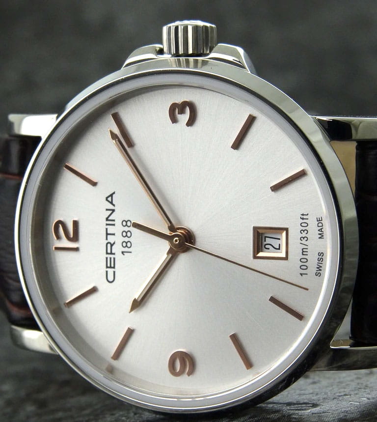 Женские швейцарские часы с сапфировым стекломСапфировое стеклоПрочный и надёжный материал из кристалла сапфира синтетического происхождения, характеризующийся особой твёрдостью и устойчивостью к царапинам и повреждениям. Certina DS Caimano C017.210.16.037.01 привлекает внимание окружающих приятным сочетанием простоты и кокетства. DS Caimano. Водонепроницаемые женские часы. Круглый стальной корпус. Циферблат выполнен по технологии Sunray (солнечные лучи). Узкие заостренные прямоугольные стрелки в стиле Baton. Метки в виде штрихов, 3, 6 и 12 часовые метки в виде арабских цифр.