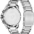Citizen Chronograph AN3690-56B часы-хронографХронографФункция позволяет измерять отрезки времени с особой точностью: часы, минуты, секунды. Верным признаком хронографа является наличие на циферблате 3 дополнительных окошек-счётчиков. с секундомеромСекундомерСекундоме́р — прибор, способный измерять интервалы времени с точностью до долей секунды. спортивного дизайна с высоким уровнем водозащиты. Корпус из нержавеющей стали диаметром 44 мм идеально сбалансирован. Минеральное стеклоМинеральное стеклоМинеральное стекло представляет собой искусственно выращенный минерал кварца. Такое стекло отличается особой устойчивостью к повреждениям и царапинам. Уступает по некоторым качествам сапфировому стеклу. обеспечивает отличную защиту циферблата от царапин. Часы работают на основе кварцевого механизма. Стальной браслет на раскладной застёжкеРаскладная застёжкаТакой тип застёжки используется только на браслетах из металла. Она никогда не раскрывается полностью, происходит разделение на 2 и более частей. Раскладывающая застёжка снизит вероятность потери часов к минимуму. идеально дополняют дизайн часов, обеспечивая комфортное ношение. Секундомер с точностью 1с и временем измерения 12ч отображается центральной стрелкой. Циферблат с метками в виде штрихов выполнен по технологии Sunray (солнечные лучи). Окошко даты находится в положении 3 часа. Заводная головка с защитой. Часы обладают впечатляющей водонепроницаемостью до 100WR, что делает их идеальными для повседневной носки.
