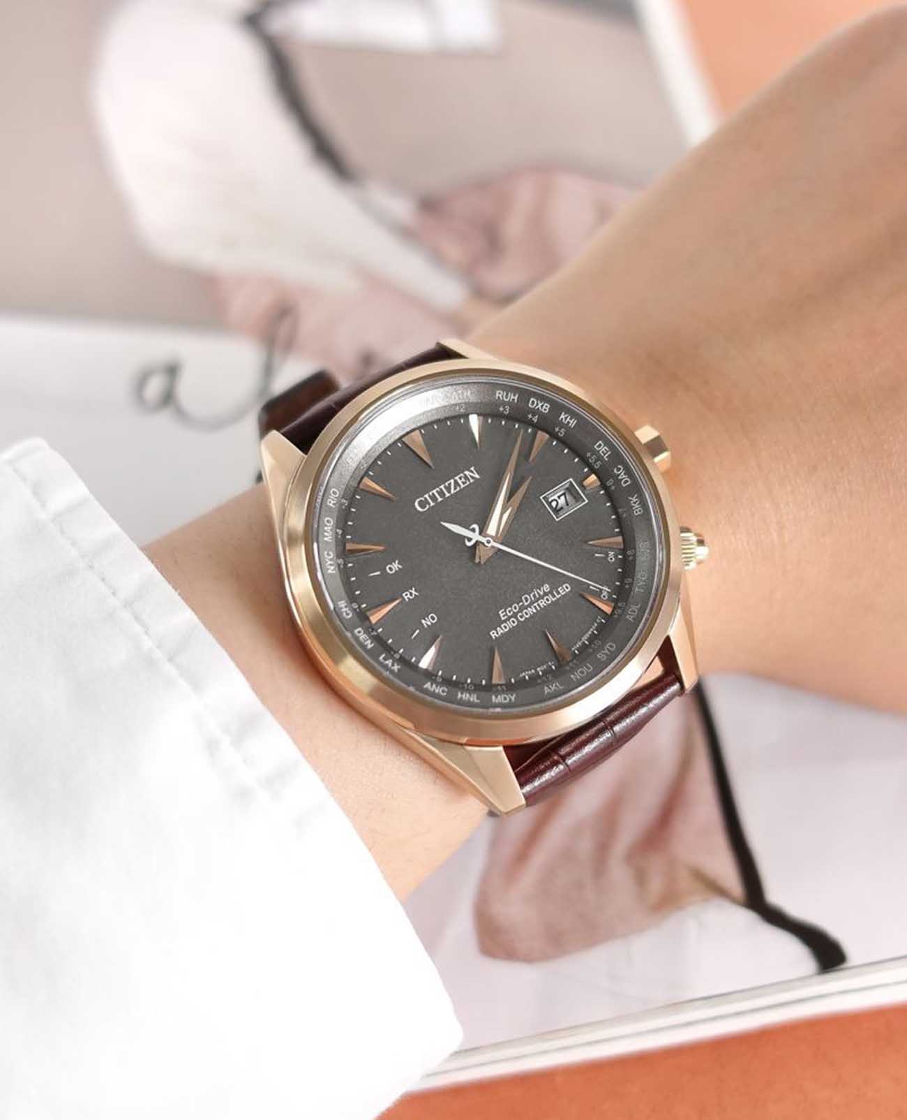 Citizen CB0273-11H — это высокоточные японские часы с современным кварцевым механизмом Citizen H145 и инновационной системой Eco-Drive, работающей от солнечной энергии и не требующей замены батарейки. Запас хода составляет до 180 дней без подзарядки, предусмотрены функции индикации уровня заряда, предотвращения перезарядки и энергосбережения. Корпус выполнен из прочной нержавеющей стали с IP-покрытиемIP-покрытиеМетод ионного напыления. Демонстрирует повышенную устойчивость к истиранию, окислению и химическим веществам. Под воздействием высокого давления и температуры около 1500°C молекулы металла надёжно соединяются с частицами корпуса часов., диаметр корпуса — 43 мм, толщина — 10 мм, ширина ремешка — 22 мм. Защита от воды до 100WR позволяет использовать часы во время плавания. Особая технология Sunray придаёт графитовому циферблату элегантный вид, а сапфировое стеклоСапфировое стеклоПрочный и надёжный материал из кристалла сапфира синтетического происхождения, характеризующийся особой твёрдостью и устойчивостью к царапинам и повреждениям. с вечным календарём с отображением числа, окошко даты расположено на отметке 3 часа. Часы автоматически принимают радиосигналы времени с вышек в Европе, США, Японии и Китае, обеспечивая максимально точное время и автоматический переход на летнее и зимнее время с возможностью отключения этой функции. Стрелки с люминесцентным покрытиемЛюминесцентное покрытиеПозволяет считывать показания времени в темноте. Производители наносят на стрелки, часовые индексы, безель или поверхность циферблата светонакопительный состав, дающий холодное свечение. обеспечивают отличную читаемость времени даже в темное время суток. Также поддерживается мировое времяМировое время Полезное часовое усложнение, отображающее время в основных городах и известных областях по всему миру, оно связано с часовыми поясами, удобно для путешественников и бизнесменов. для 26 городов. Коричневый кожаный оборудован удобной застежкой «бабочка»Застёжка "бабочка"Такой вид застёжки дополняется предохранителями, помогающими избежать случайного раскрытия браслета. Обладают изящным исполнением. .