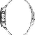 Мужские кварцевые часы Daniel Klein — это смелый и броский аксессуар. Корпус диаметром 43 мм выполнен из нержавеющей стали. БезельБезельВнешний ободок, закрепляющий стекло. В спортивных часах так называется поворотное кольцо с делениями на циферблате, выполняет роль таймера – замеряет отрезки времени на шкале. Неподвижный безель – элемент декора. Однонаправленно вращающийся безель на дайверских часах позволяет фиксировать моменты погружения и выныривания на поверхность. с IP-покрытиемIP-покрытиеМетод ионного напыления. Демонстрирует повышенную устойчивость к истиранию, окислению и химическим веществам. Под воздействием высокого давления и температуры около 1500°C молекулы металла надёжно соединяются с частицами корпуса часов.. Циферблат синего цвета имеет текстурное покрытие, оформлен штрихами, стрелками и тремя вынесенными субциферблатами: для отображения дня недели, даты и 24-часового формата времени. Стрелки и метки с люминесцентным покрытиемЛюминесцентное покрытиеПозволяет считывать показания времени в темноте. Производители наносят на стрелки, часовые индексы, безель или поверхность циферблата светонакопительный состав, дающий холодное свечение., обеспечивающим хорошую читаемость в темноте. Циферблат защищён минеральным стекломМинеральное стеклоМинеральное стекло представляет собой искусственно выращенный минерал кварца. Такое стекло отличается особой устойчивостью к повреждениям и царапинам. Уступает по некоторым качествам сапфировому стеклу.. Заводная головка рифлёная, с защитой. Часы оснащены стальным браслетом на раскладной застёжкеРаскладная застёжкаТакой тип застёжки используется только на браслетах из металла. Она никогда не раскрывается полностью, происходит разделение на 2 и более частей. Раскладывающая застёжка снизит вероятность потери часов к минимуму.. Водонепроницаемость 50 м позволяет использовать часы в повседневных условиях. Идеальный выбор для тех, кто ценит турецкое качество и универсальный дизайн.